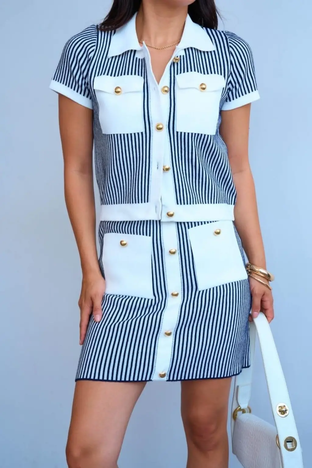 Kadın Modal Kumaş çizgili Gömlek Yaka Ikili Takım