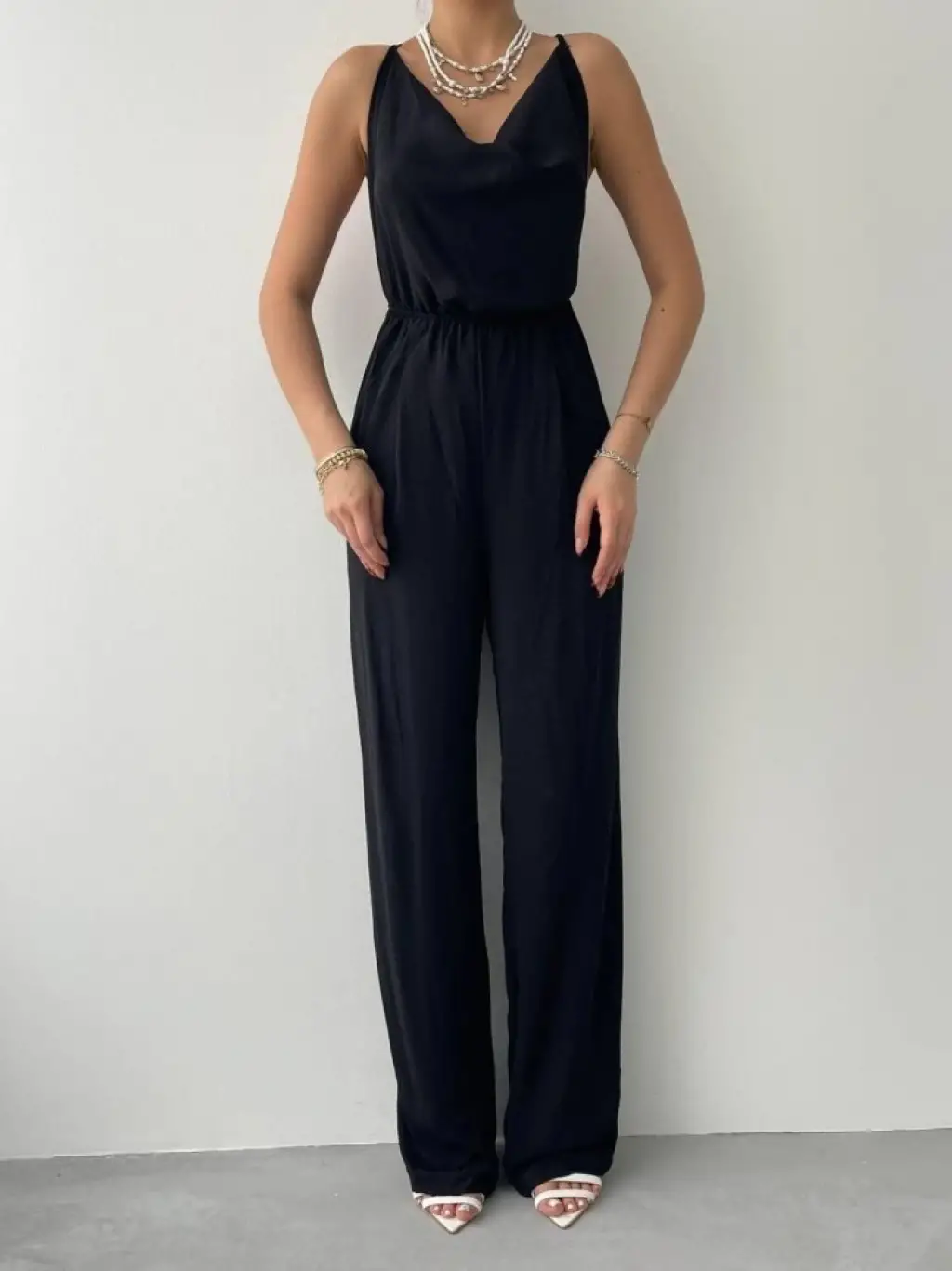 Zarif Sırt Dekolteli Siyah Tulum