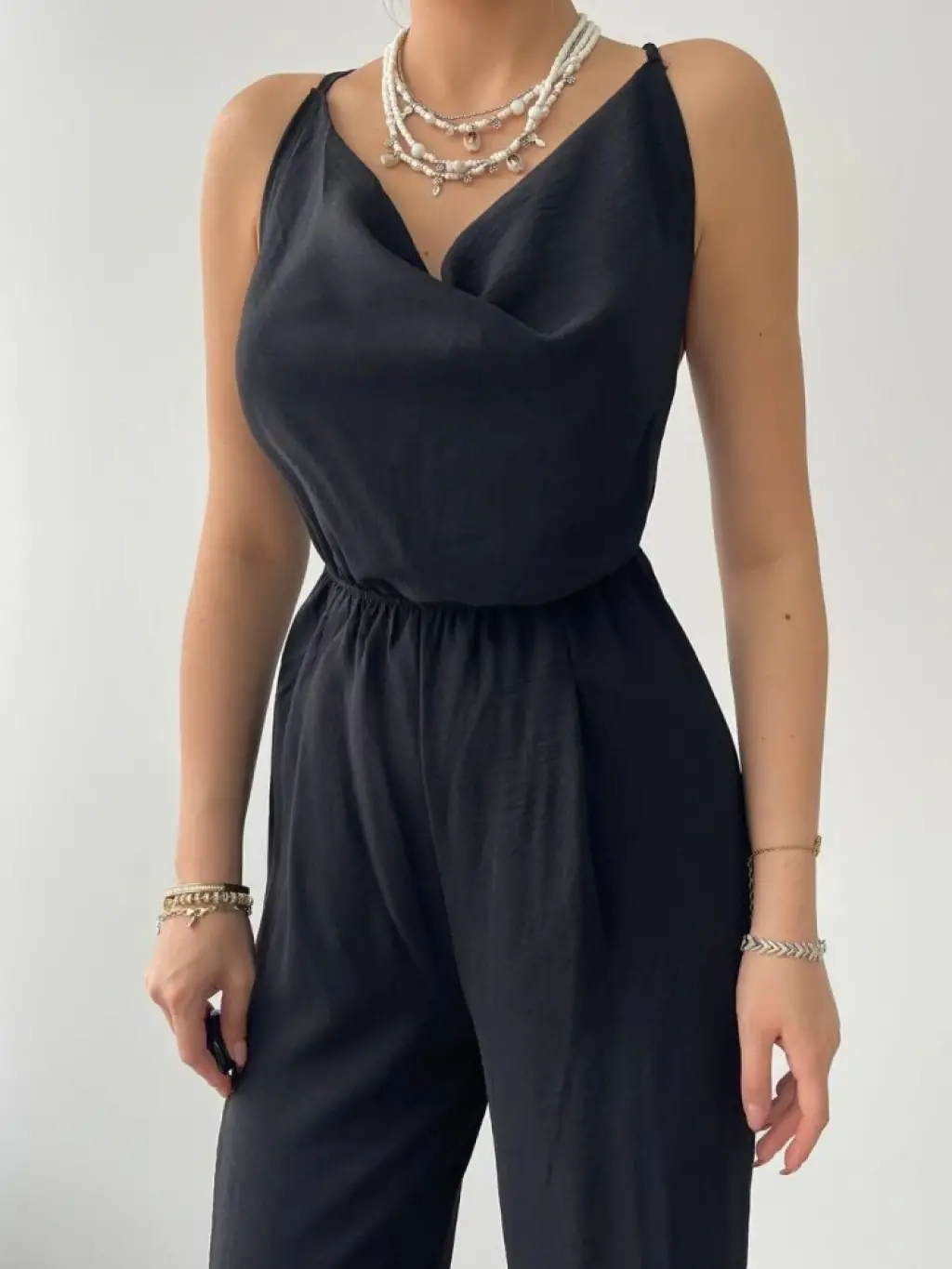 Kadın Uzun Lazer Kesik Detaylı Askılı Viskon Iki Iplik Bluz