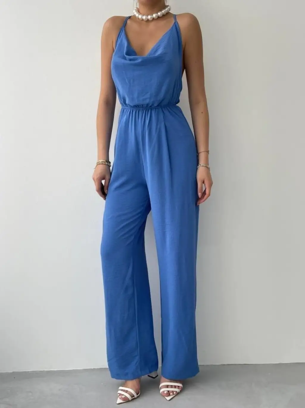 Kadın Ip Askılı Yuvarlak Yakalı Pileli Viskon Tulum
