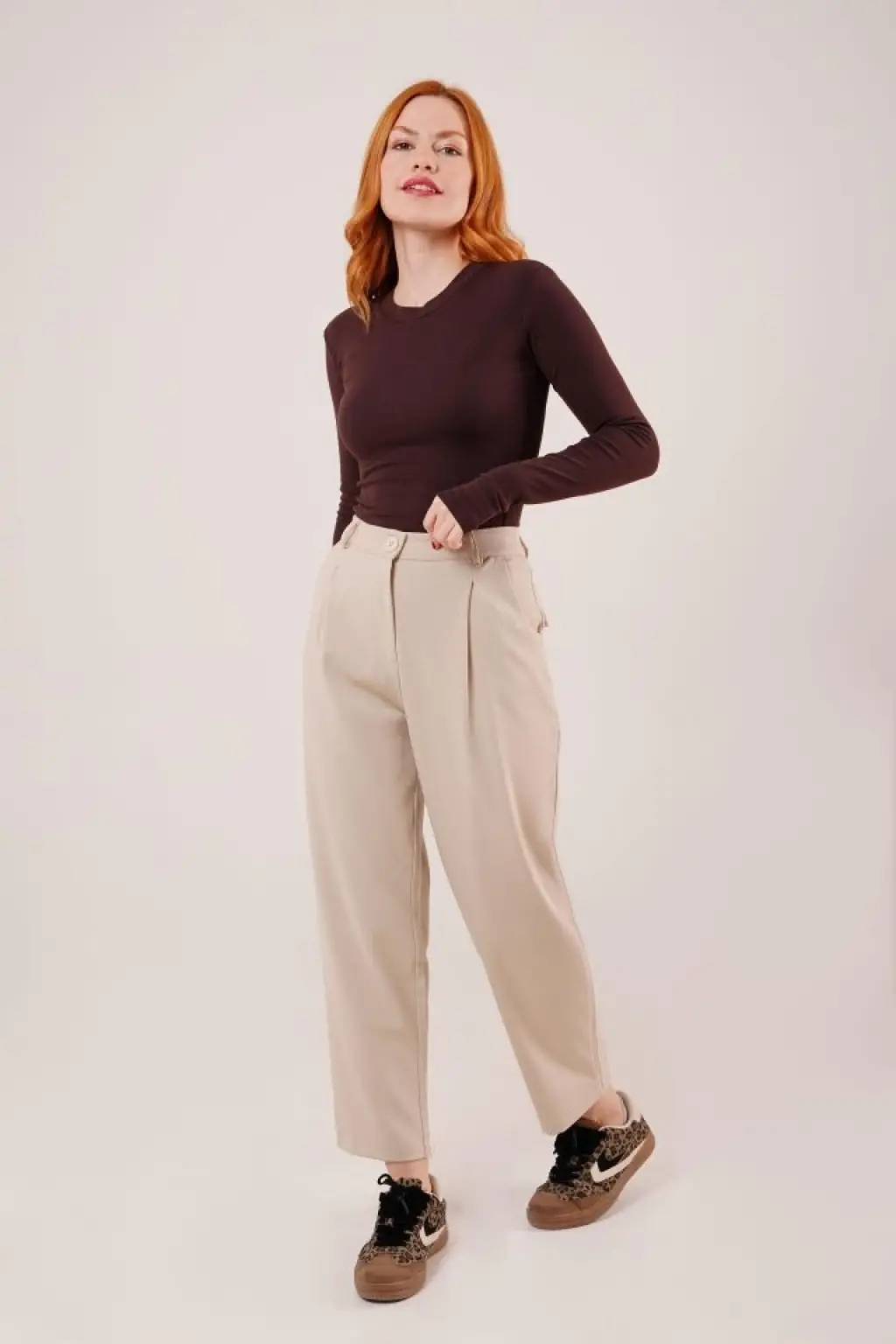 Bej Yüksek Bel Kumaş Pantolon 6650