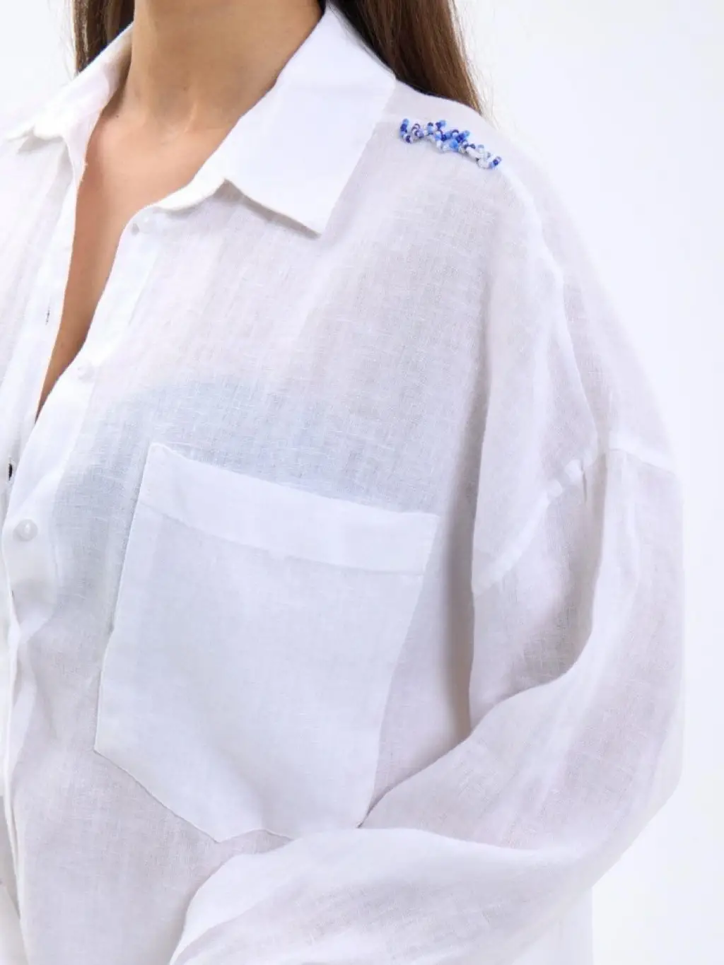 Kadın Uzun Kollu Hakim Yaka Tül Detay Ithal Krep Bluz