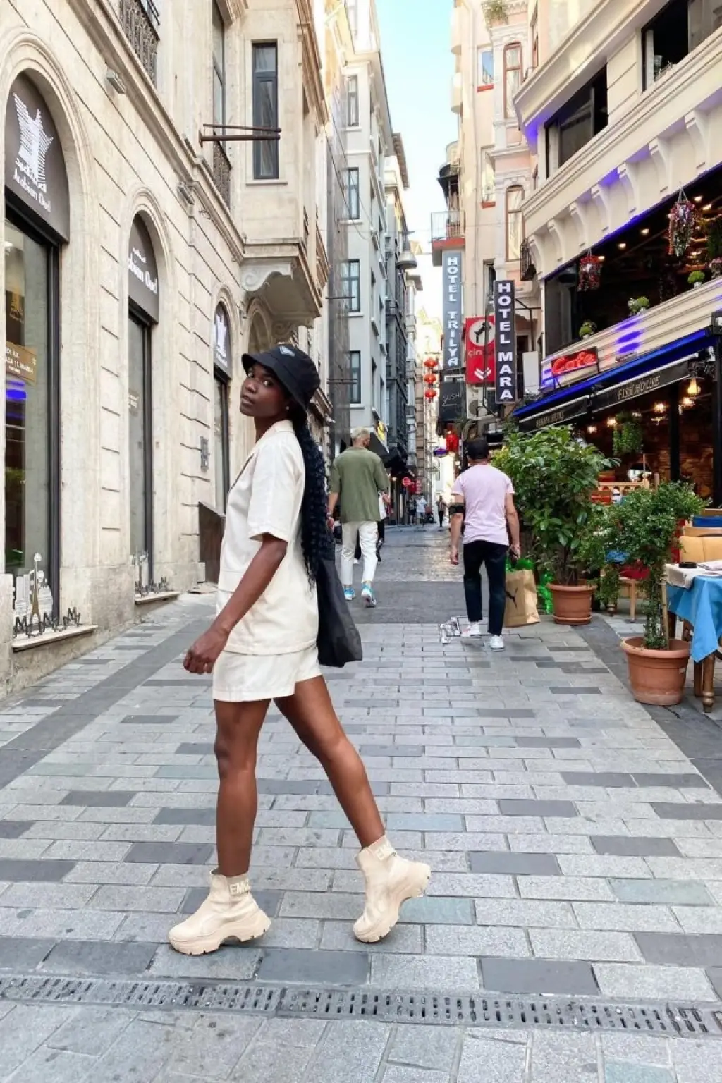 Cepli Tek Düğmeli Likralı Ceket -Krem