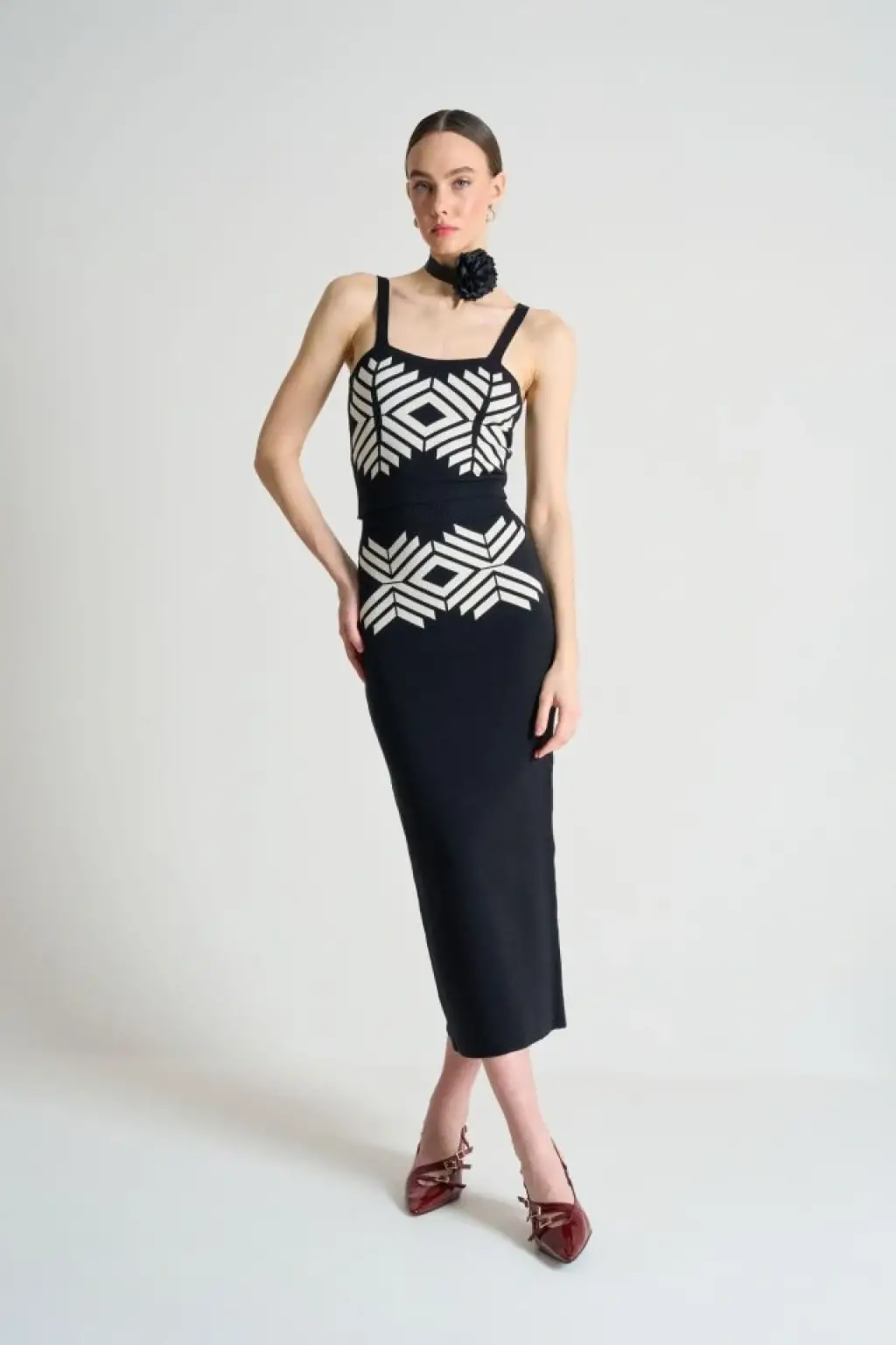 Jakarlı İnce AskılıTriko Takım - Siyah-Beyaz Kayısı