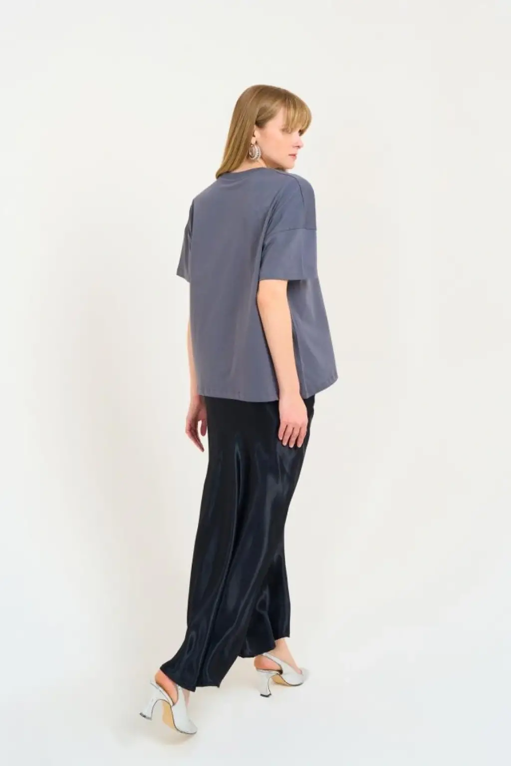 Kadın Uzun Kollu Bisiklet Yaka Asimetrik Kesim Detaylı Dantelli Viskon Bluz