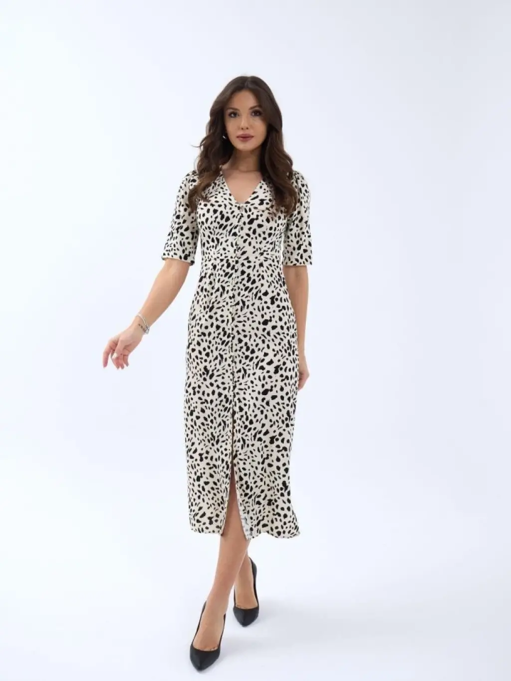 Kadın Kısa Kollu Balıkçı Yaka Derin Yırtmaç Detay Viskon Elbise