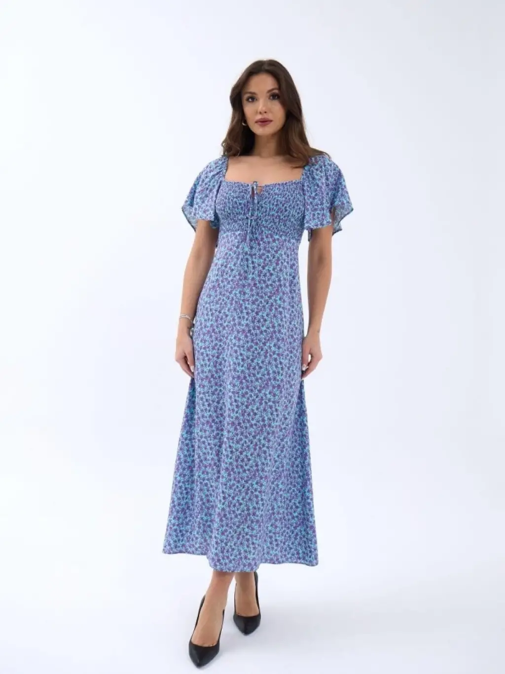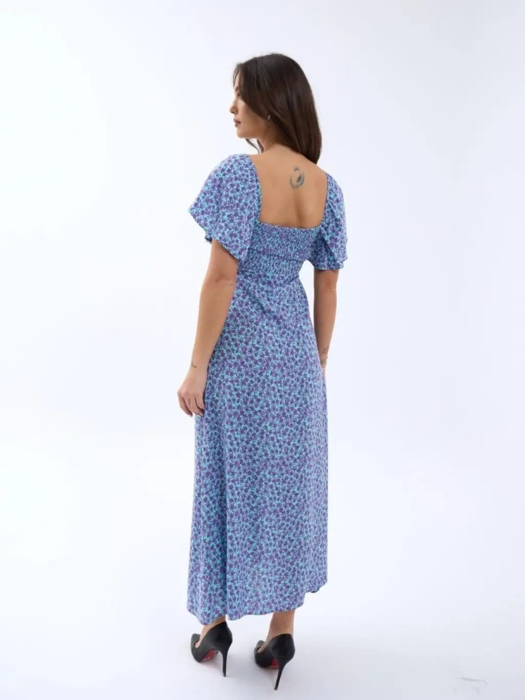 Kadın Kısa Kollu Madonna Yaka önü Kısa Arkası Uzun Ithal Krep Elbise