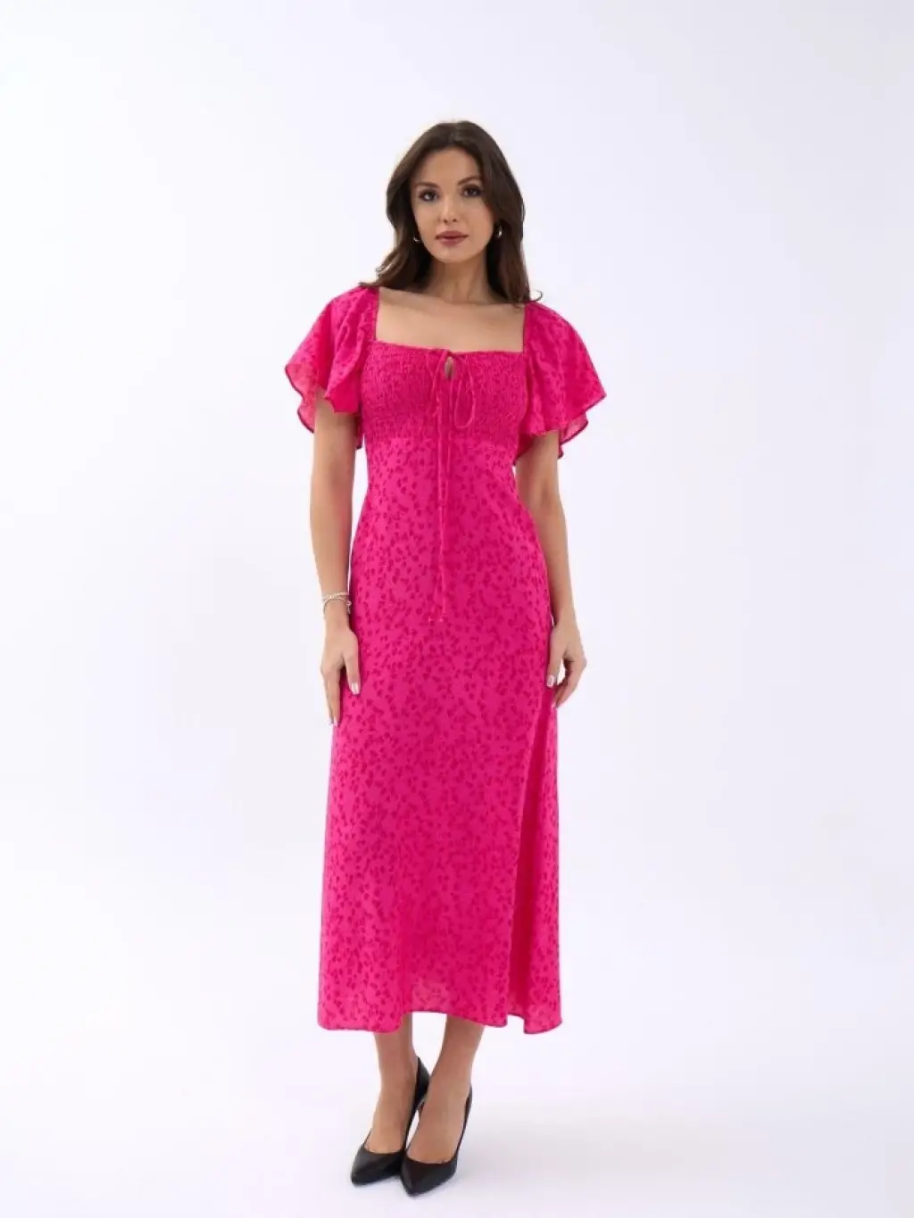Kadın Kısa Kollu Yakadan Ve Etekten Fermuarlı Midi Viskon Iki Iplik Elbise