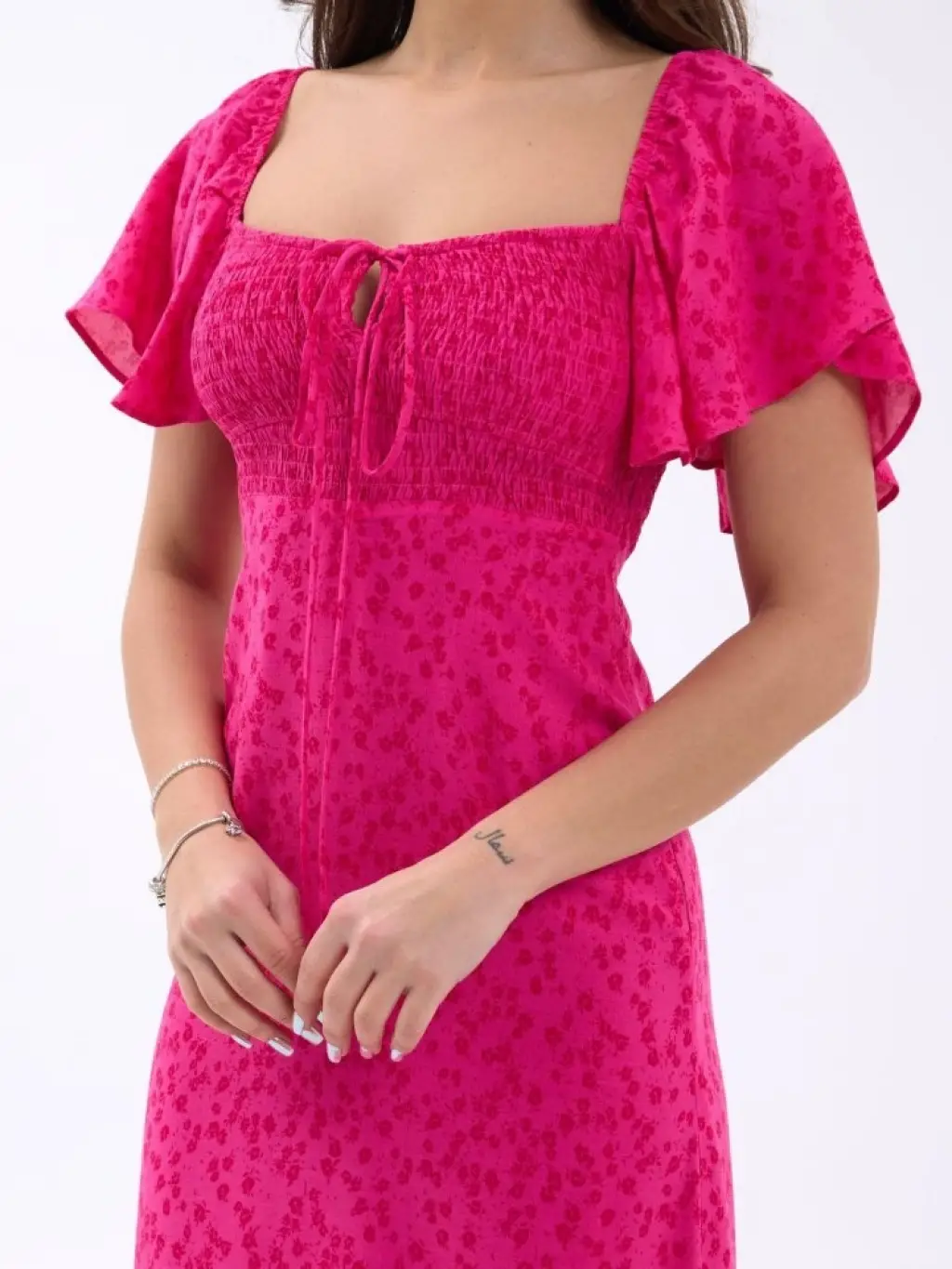 Kadın Kısa Kollu Madonna Yaka önü Kısa Arkası Uzun Ithal Krep Elbise