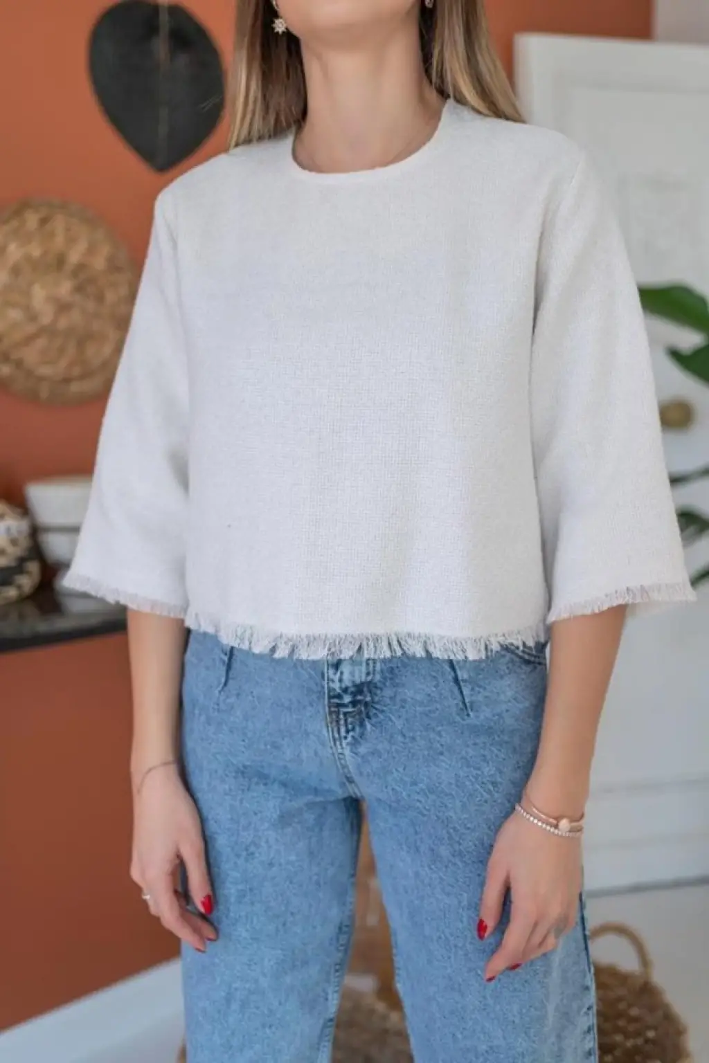 Kadın Yakası Fırfır Detay Kolları Tül Bluz