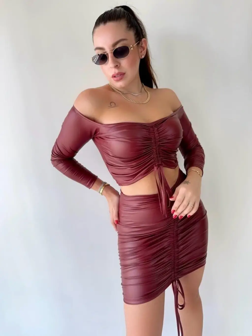 Kadın Büzgülü Deri Etek Takım Fırsat Ürün