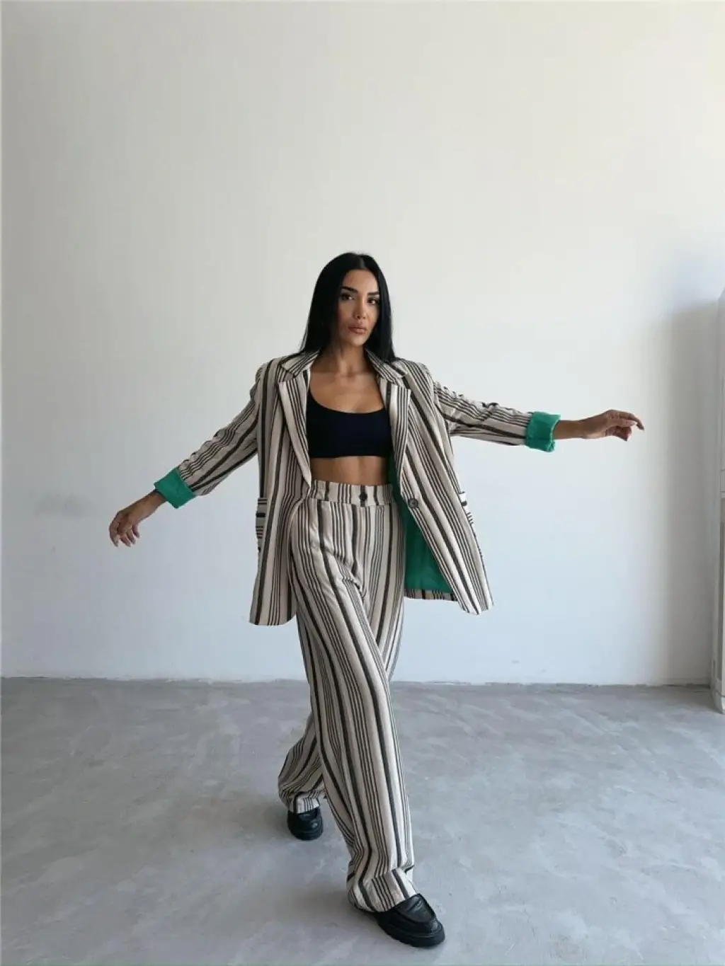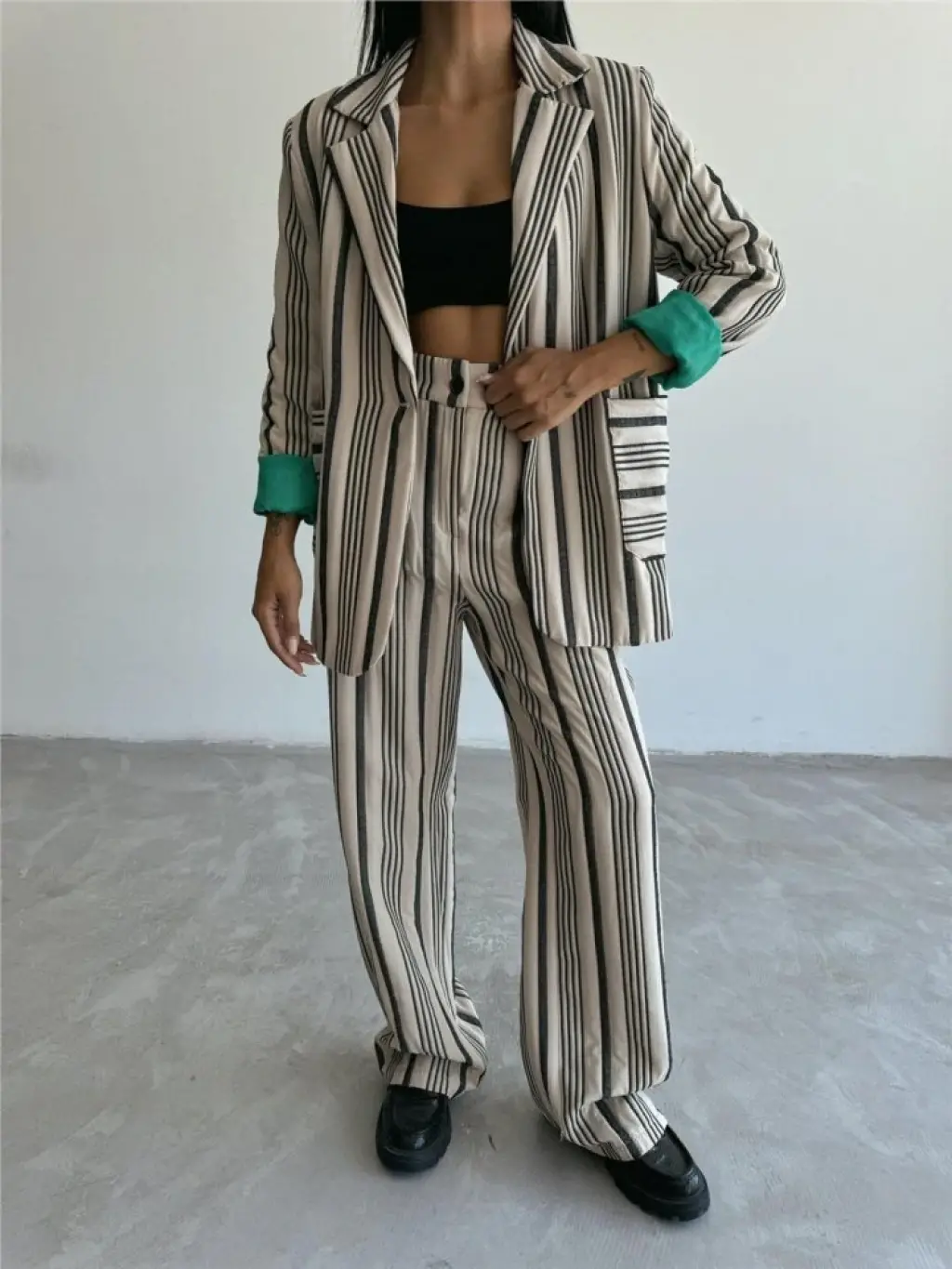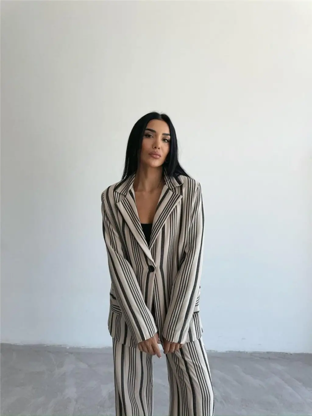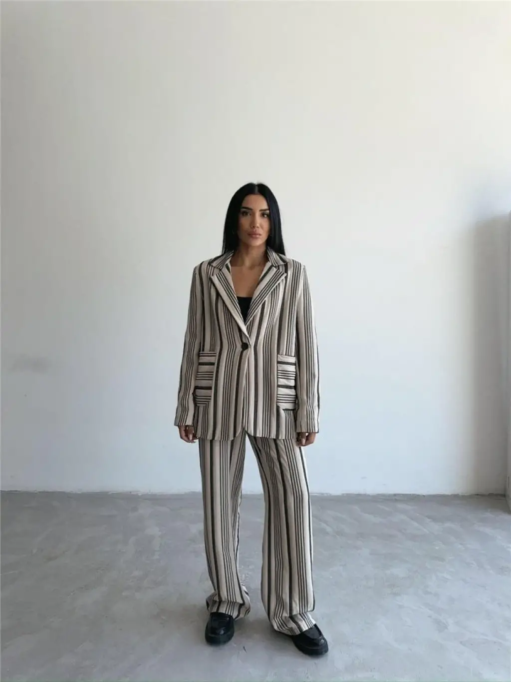 OTTOMAN ÇİZGİLİ CEKET-PANTOLON TK - Bej
