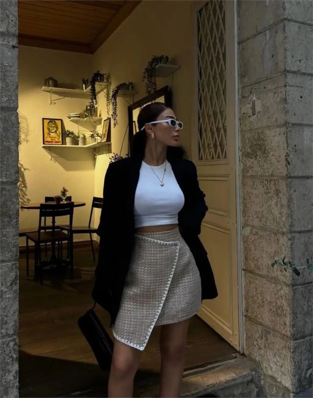 ŞANELKAPAKLI ÇOBAN DİKİŞ DETAYLI KISA ETEK - Bej