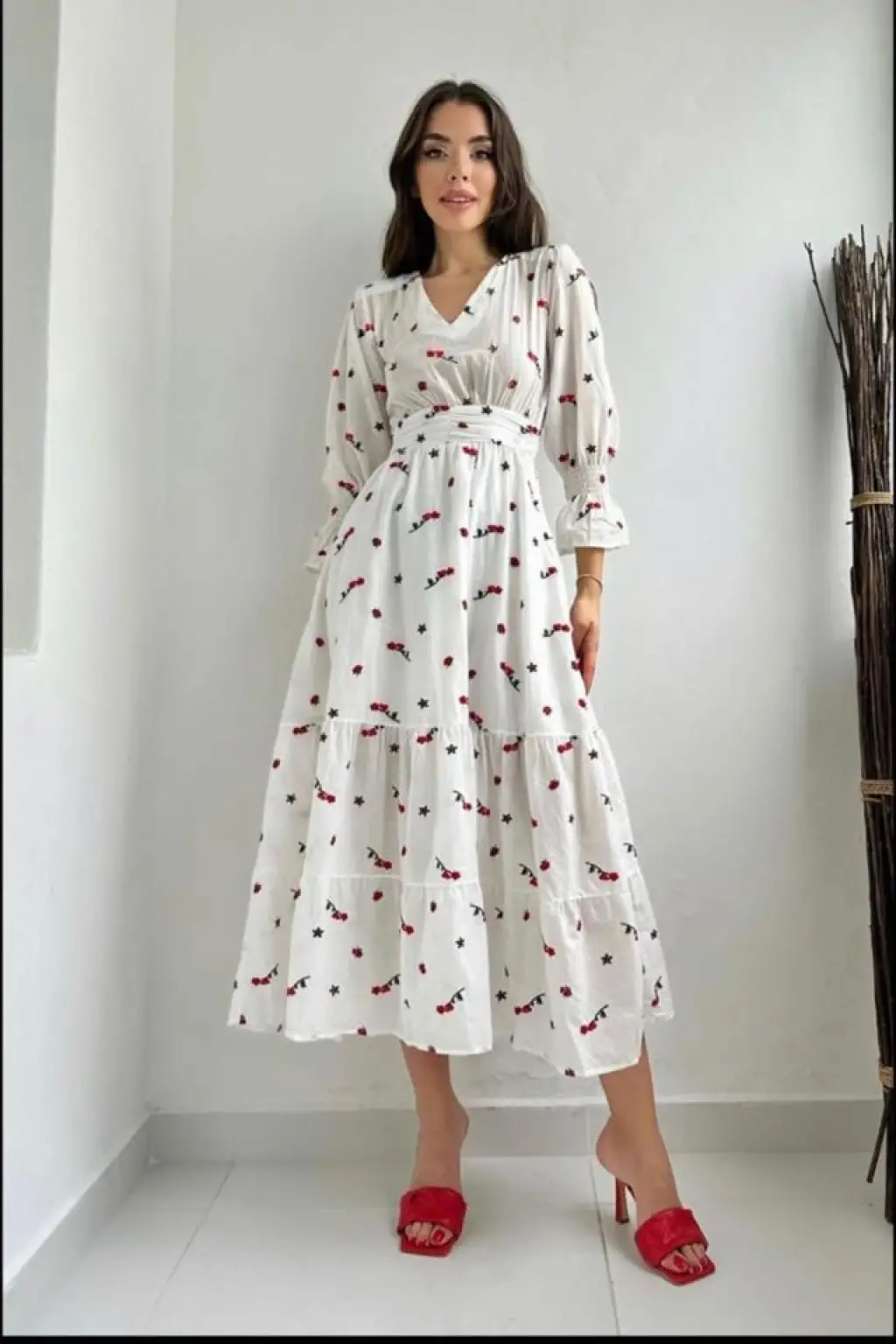 Kadın Kısa Kollu V Yakalı Maksi Boy Viskon Elbise