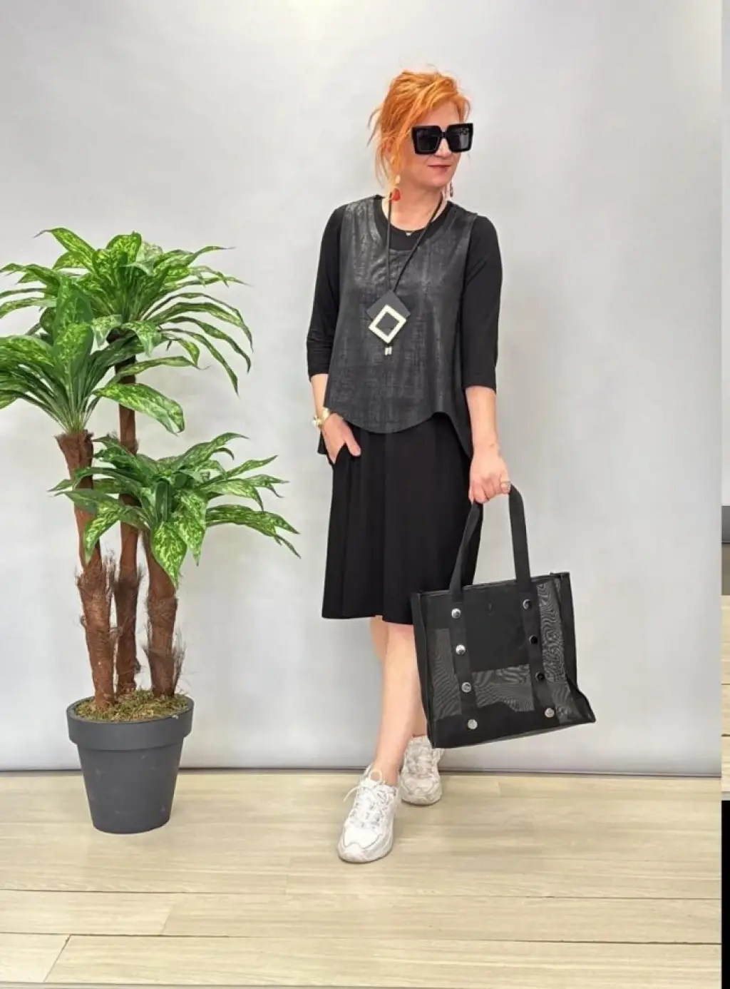 Kadın Uzun Kollu Kare Yaka üst Viskon Alt Deri Mini Elbise