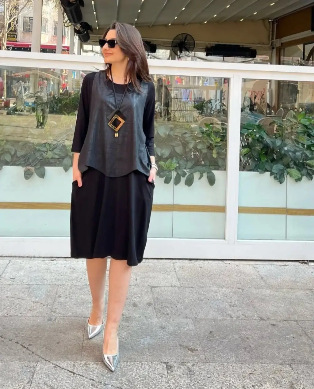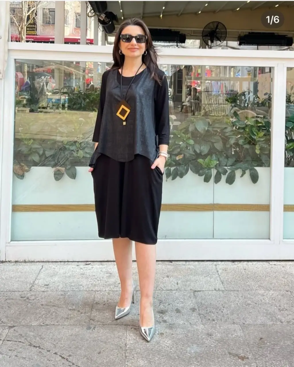 Kadın Viskon Kumaş Cep Detaylı üçlü Takım