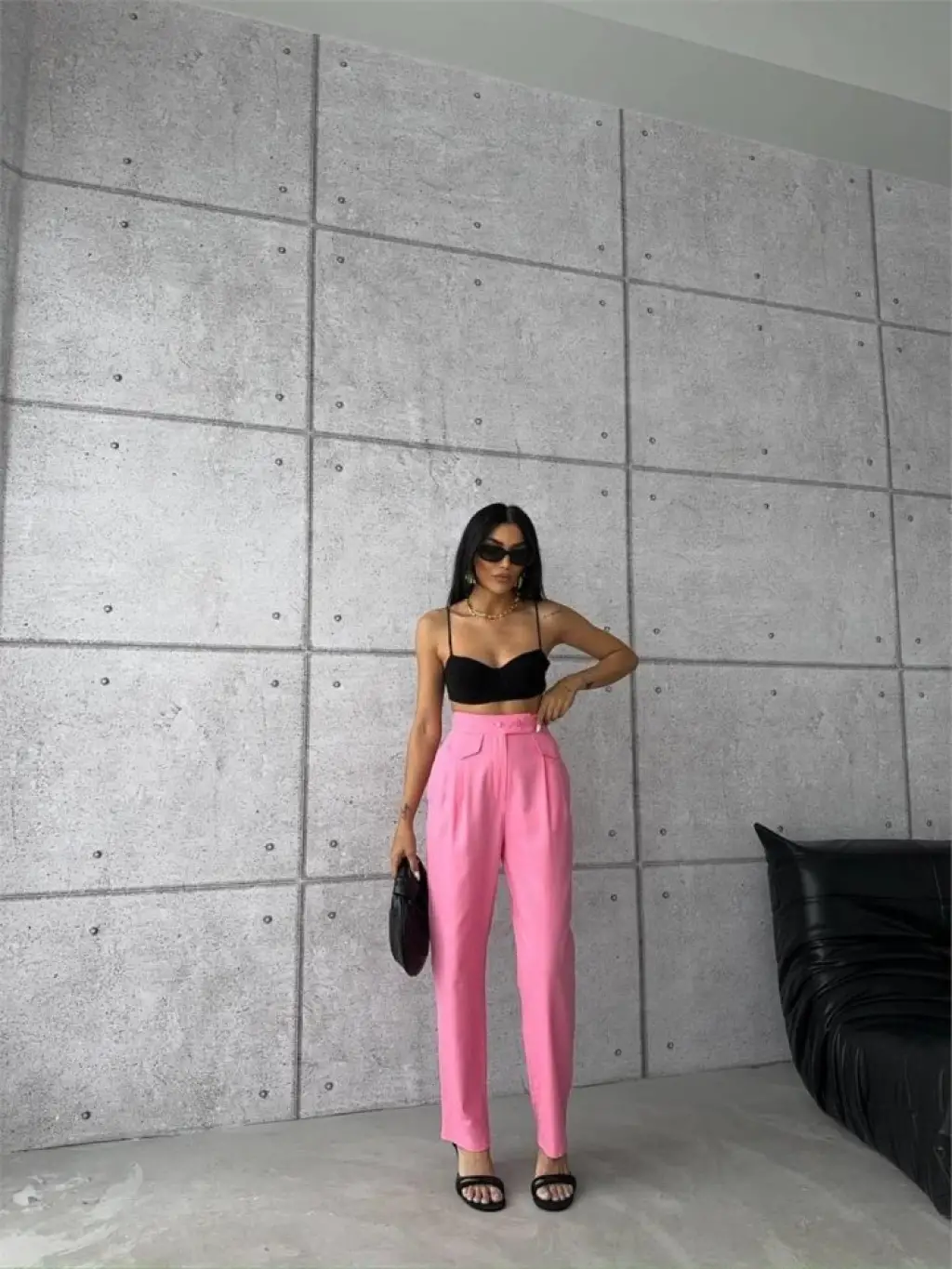 Siyah Yüksek Bel Kumaş Pantolon 6584