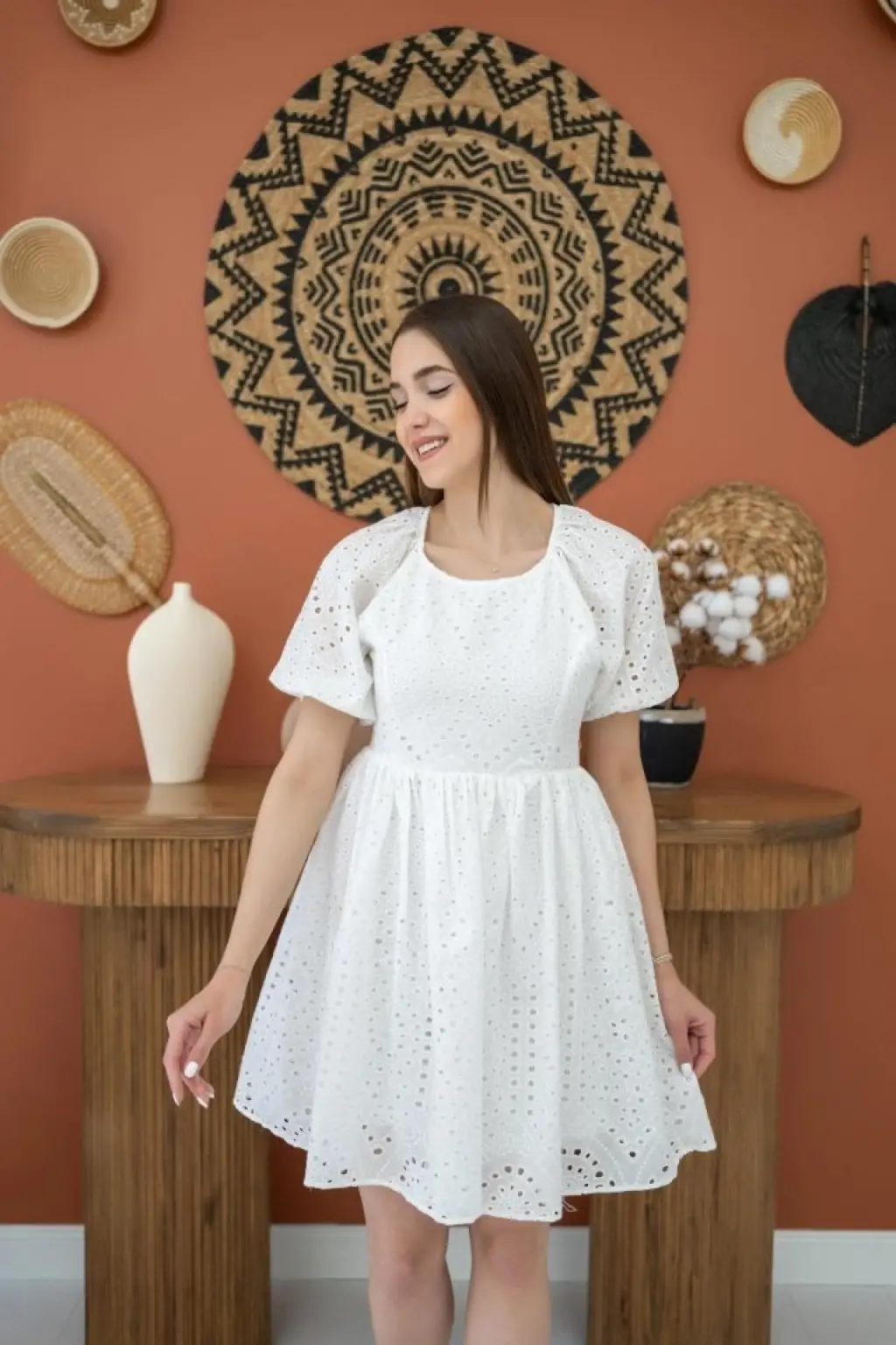 Kadın Beyaz Kare Yaka Crop Top Bluz