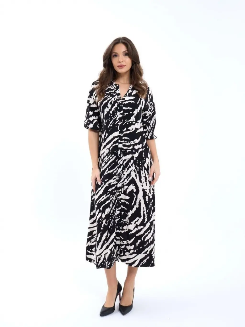Kadın Kısa Kollu Yakadan Ve Etekten Fermuarlı Midi Viskon Iki Iplik Elbise