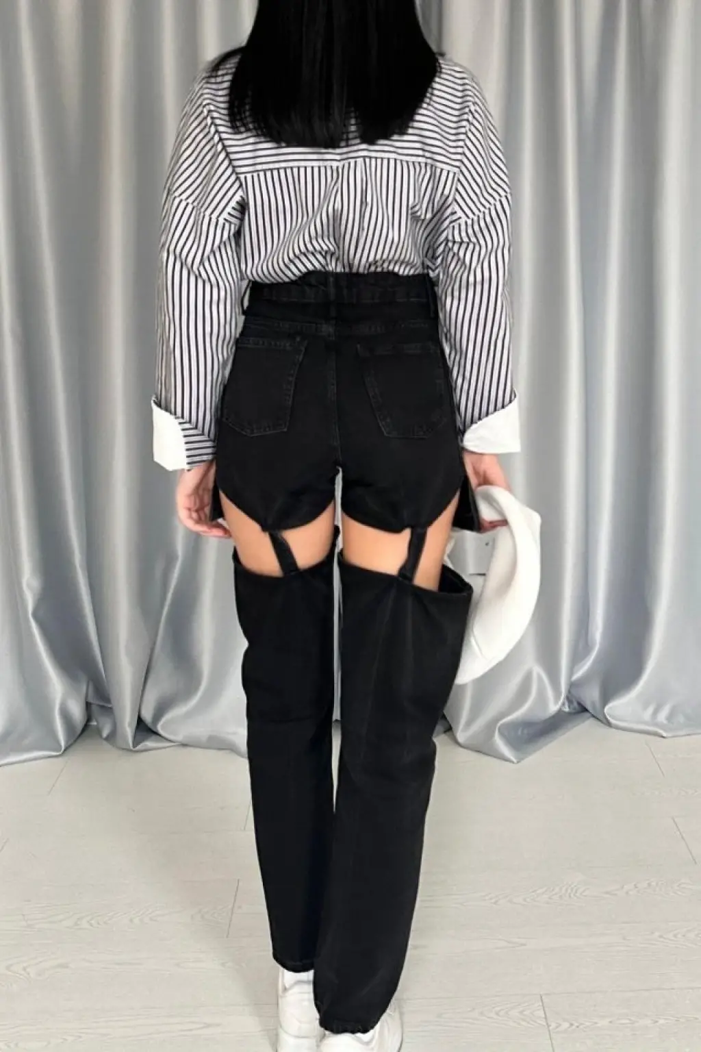 Siyah Askılı İki Parça Jeans Pantolon