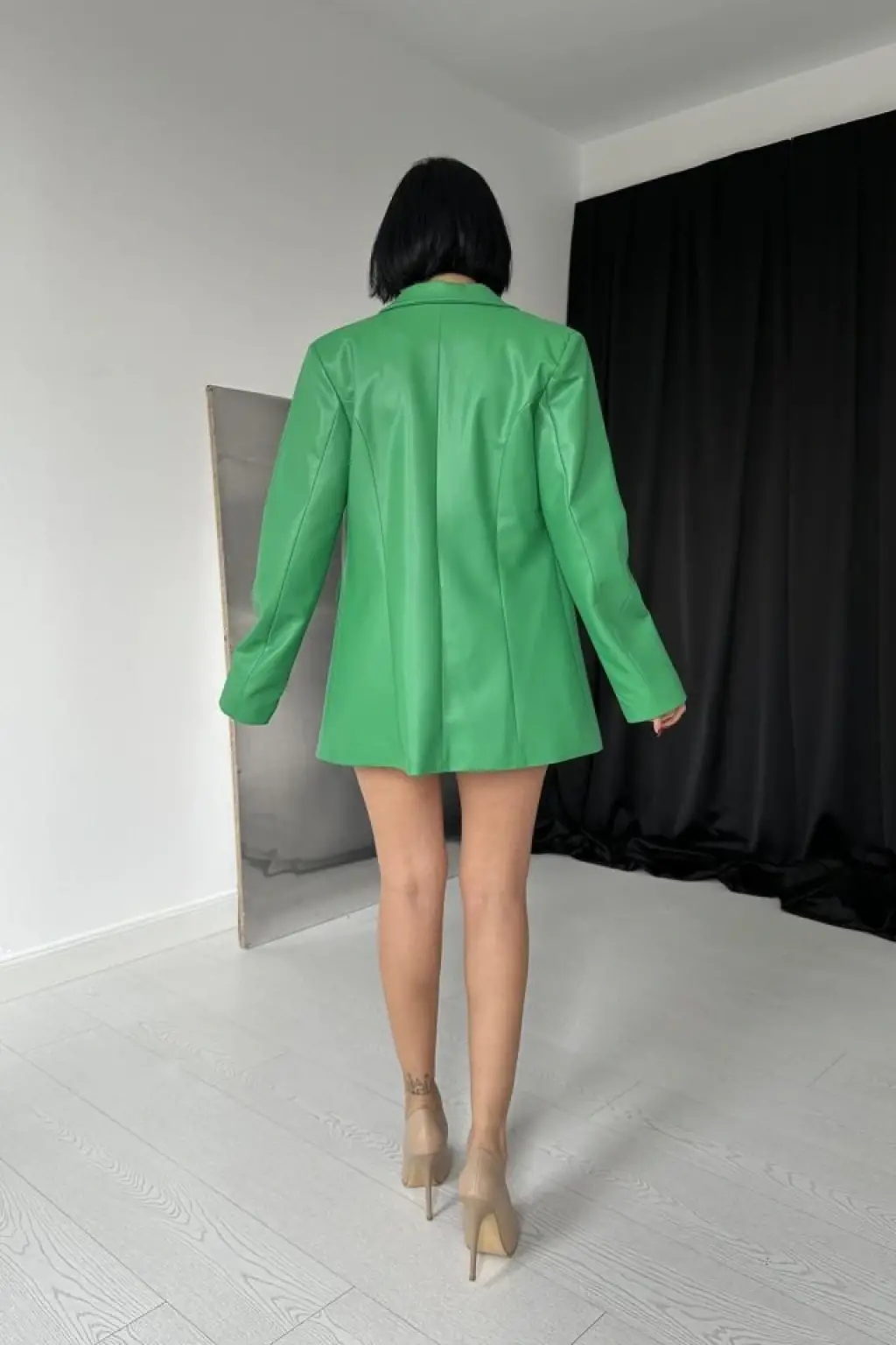 Yeşil Düğmeli Deri Ceket
