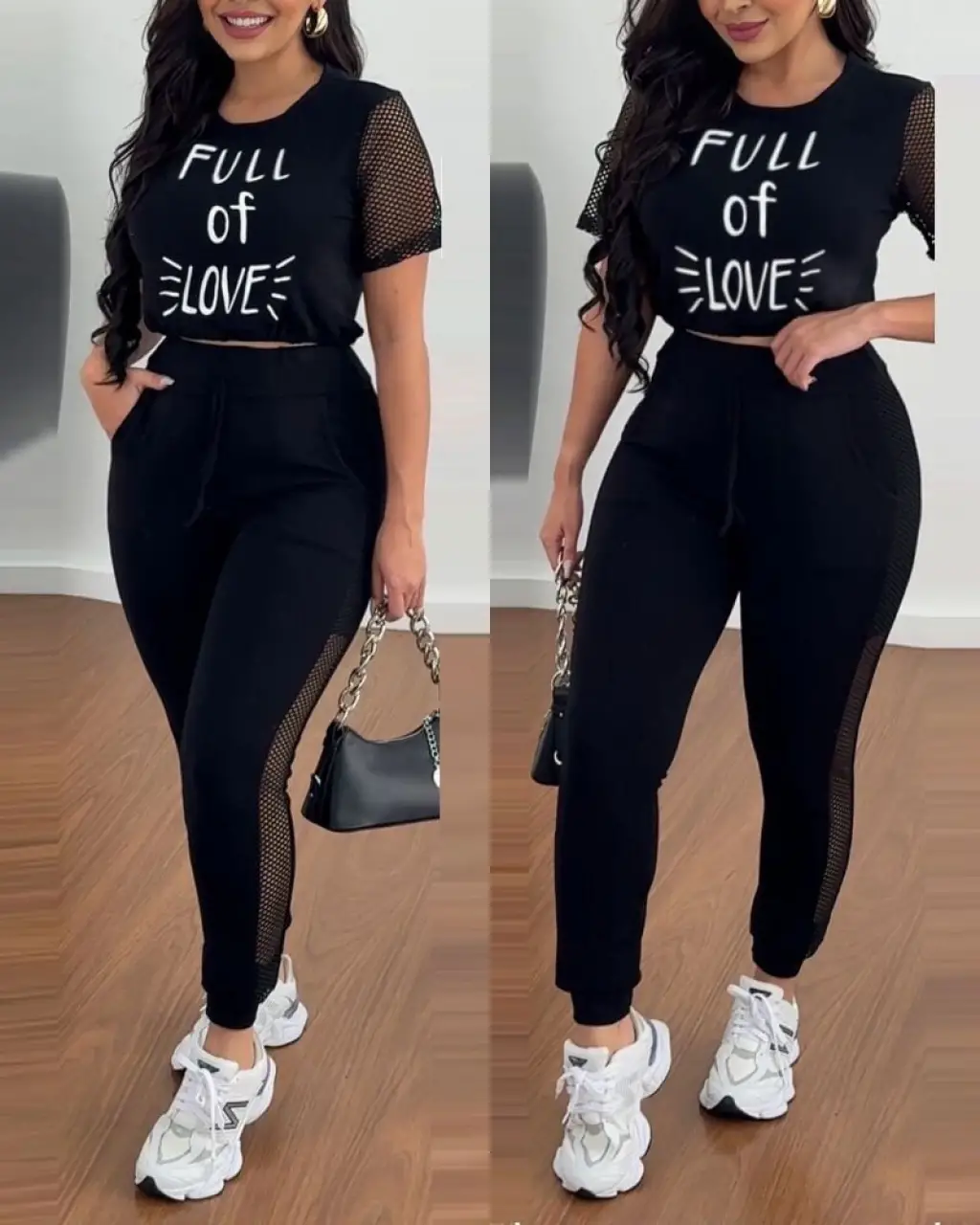 Kadın Kısa Kollu Bisiklet Yaka File Detaylı Viskon Iki Iplik Krop Ve Eşofman Altı Ikili Takım