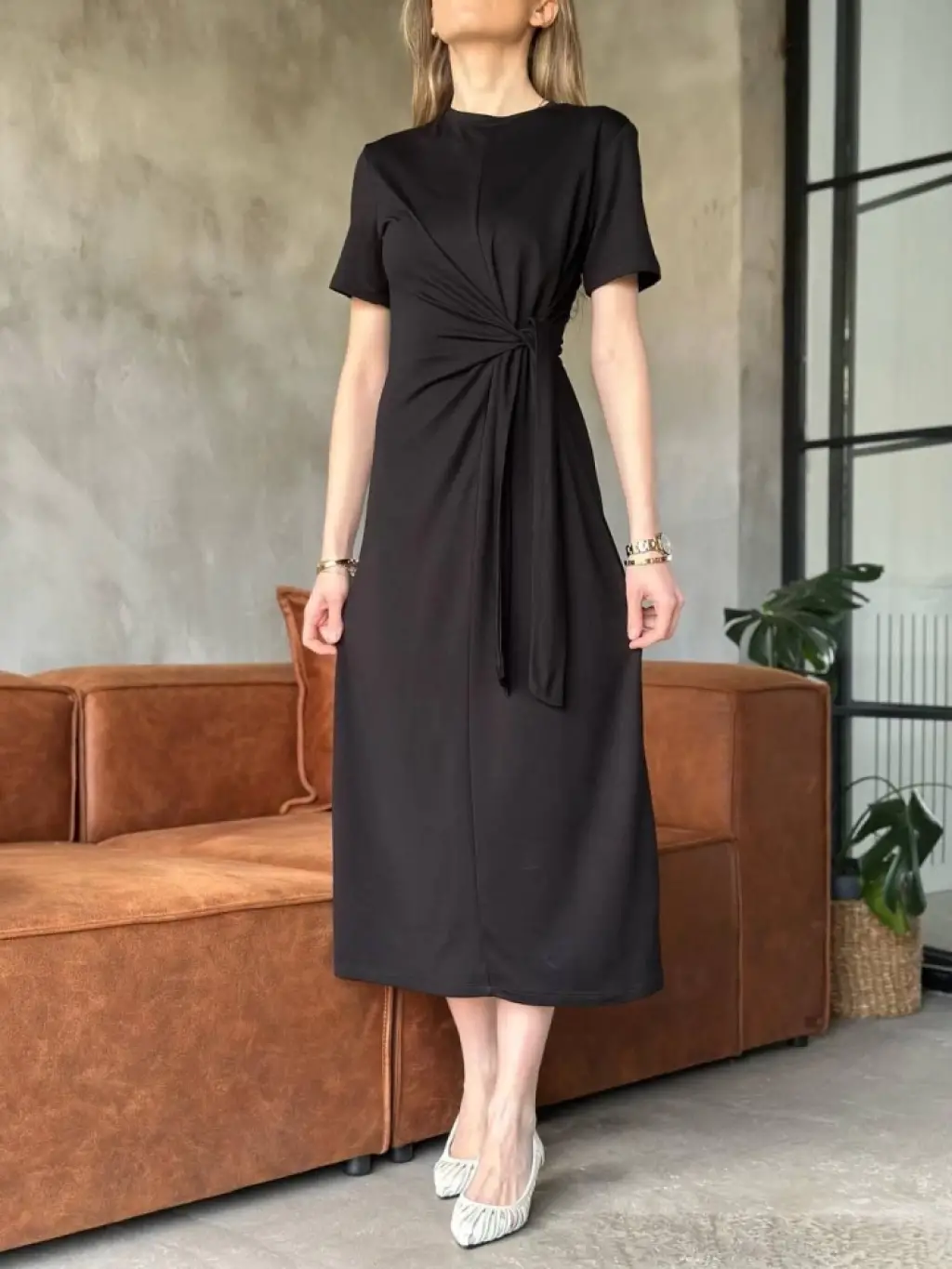 Osy Modal Yumuşak Dokulu KumaşYandan Bağlamalı Elbise - Siyah