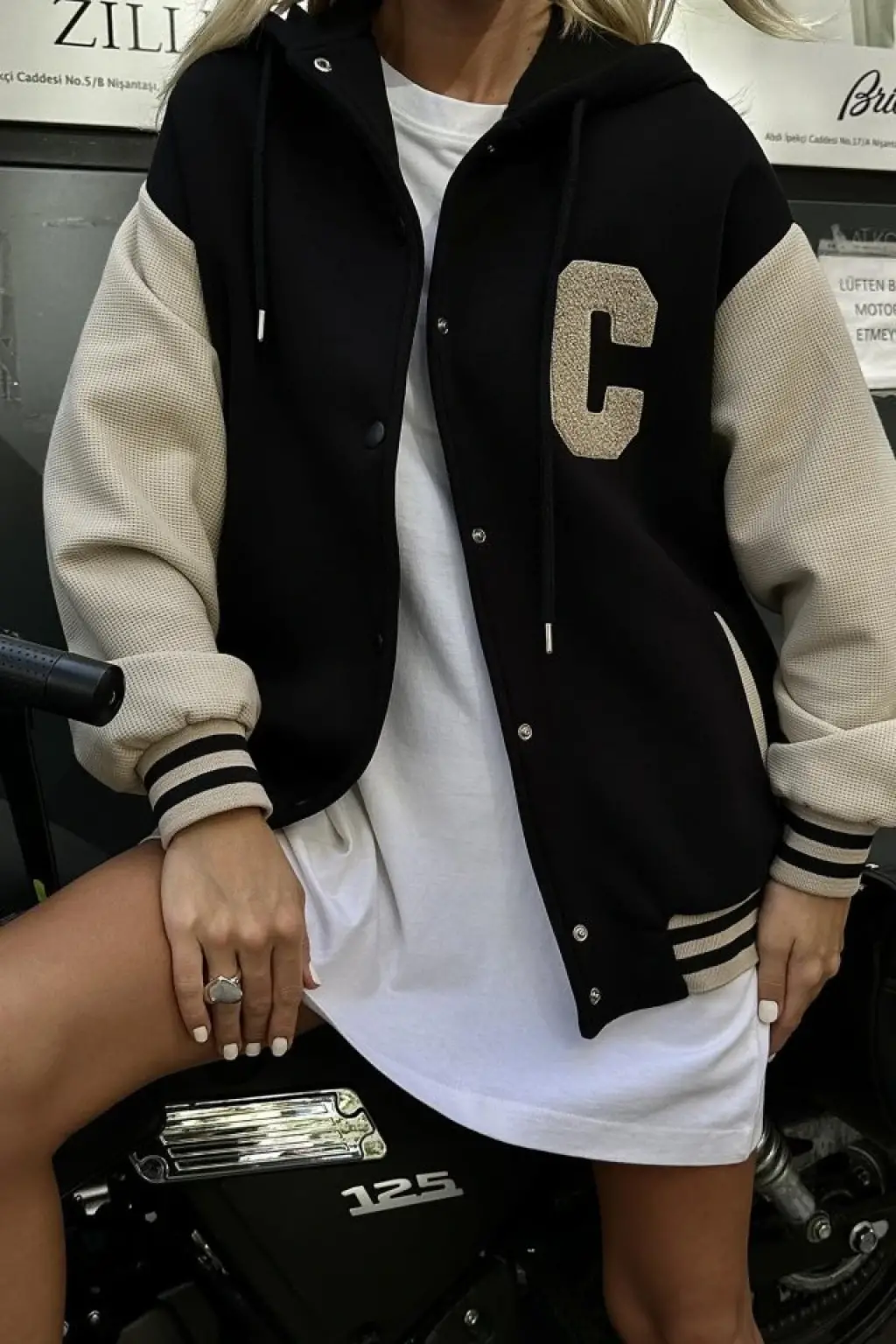 Kadın Uzun Kollu önden Fermuarlı Harf Baskılı şardonlu Dalgıç Bluz