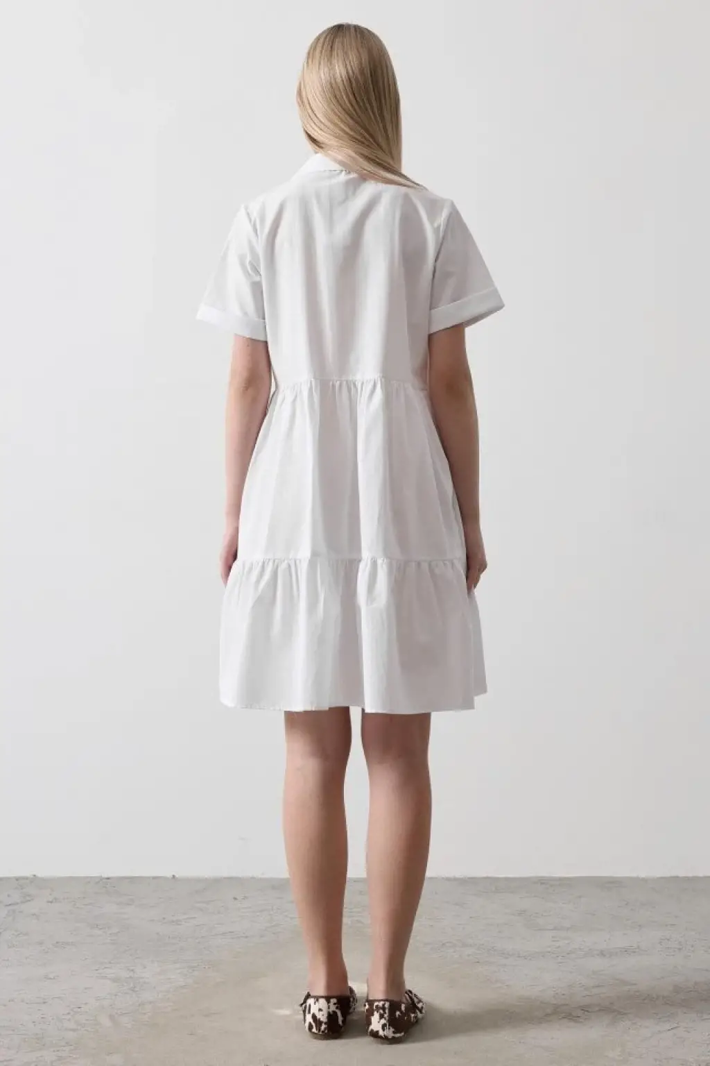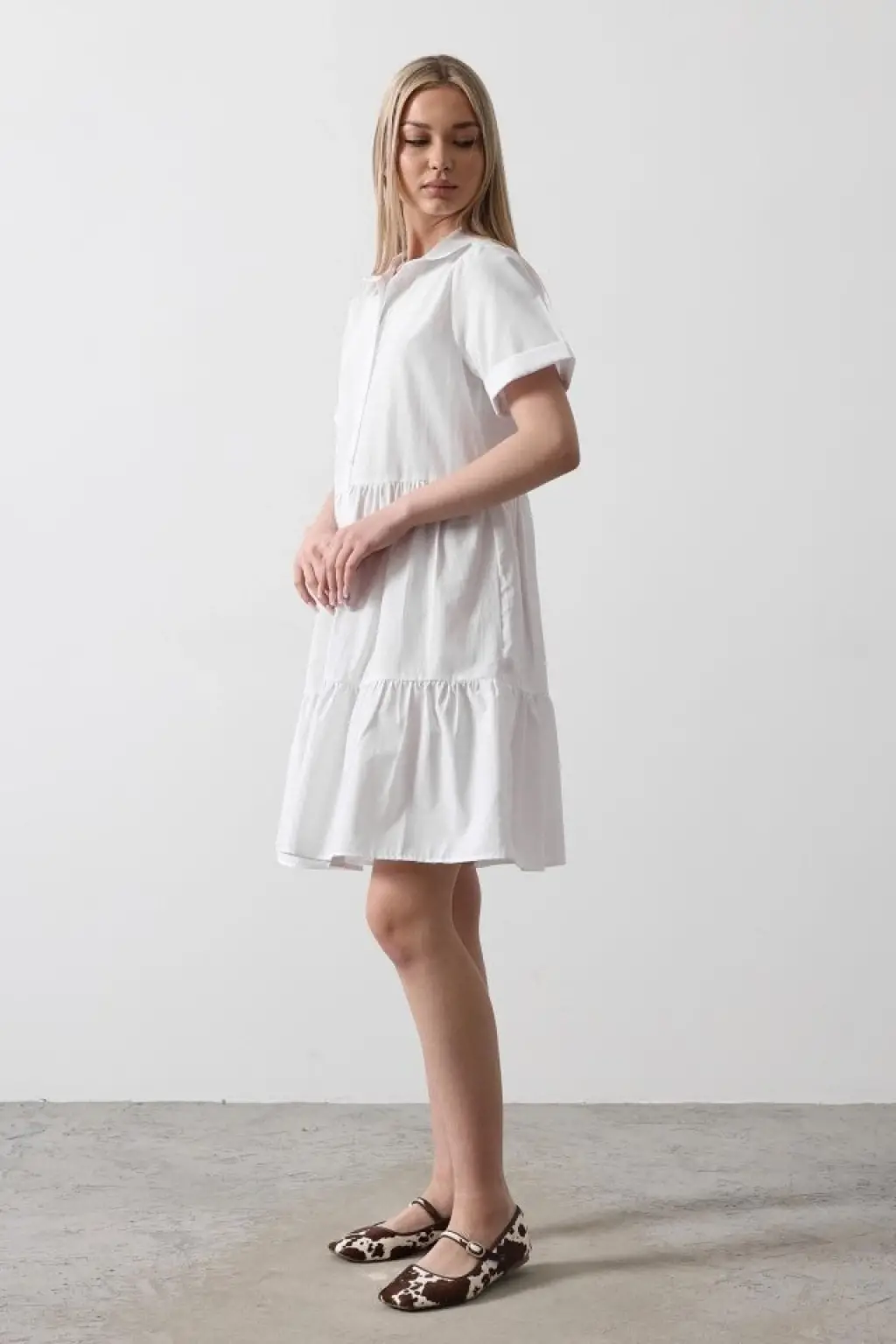 Kısa Kol Düğmeli Elbise - Beyaz