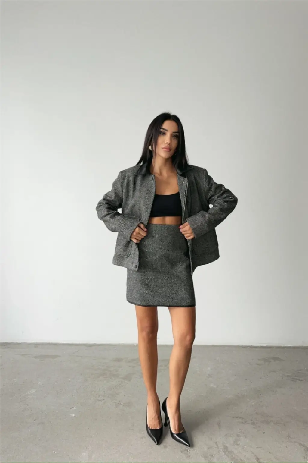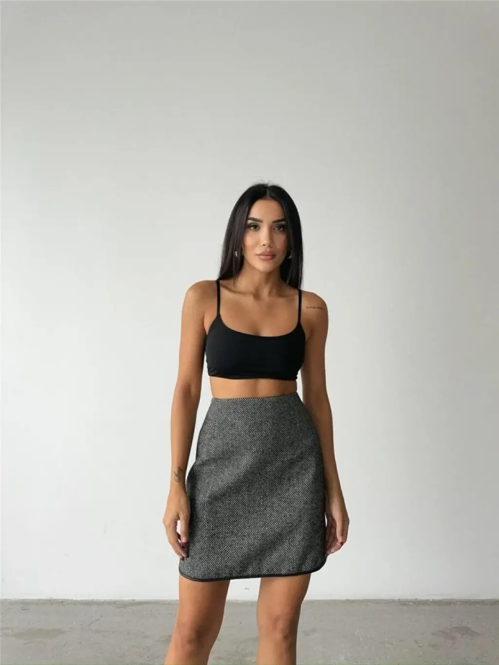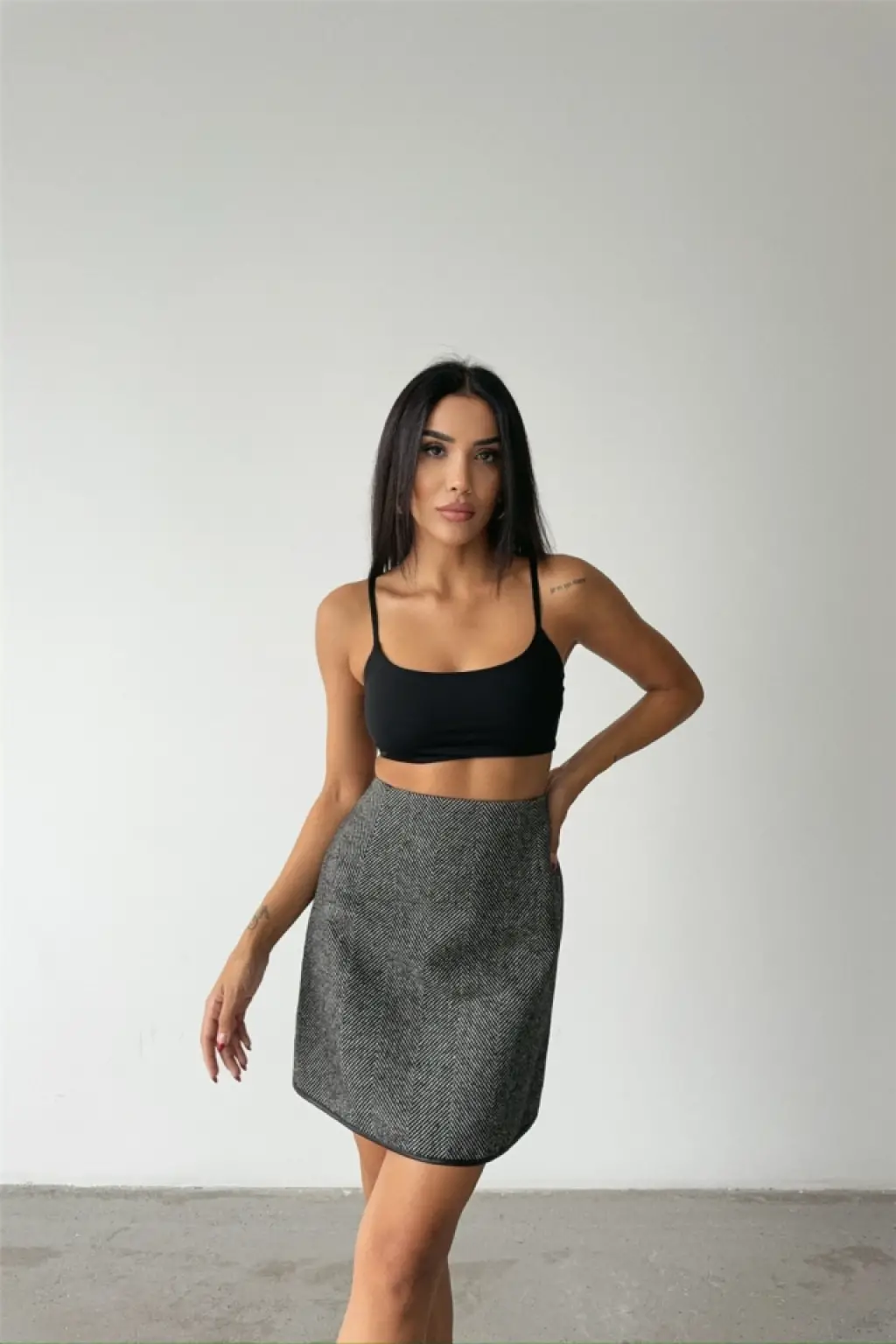 ŞANELKAPAKLI ÇOBAN DİKİŞ DETAYLI KISA ETEK - Bej