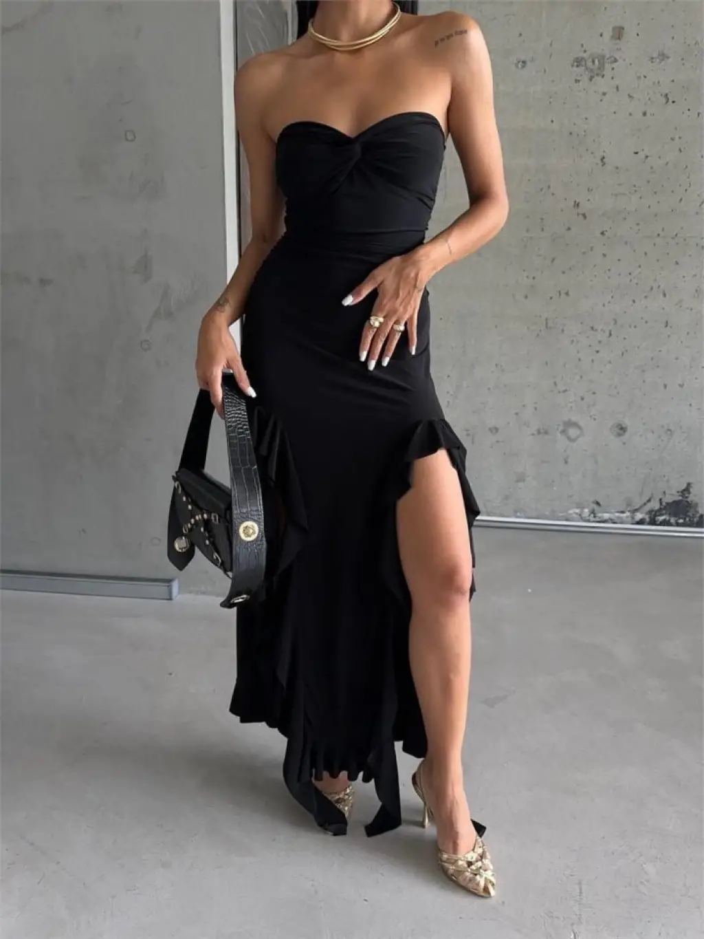 STRABLEZ SANDY ELBİSE YANLARI KATLI - Siyah