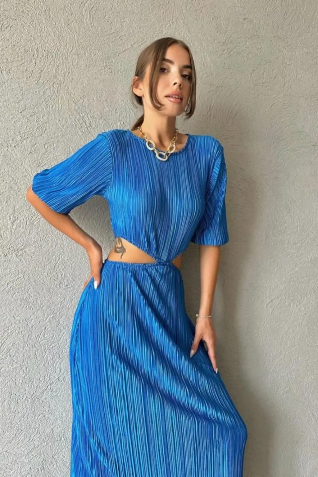 Mavi Piliseli Elbise
