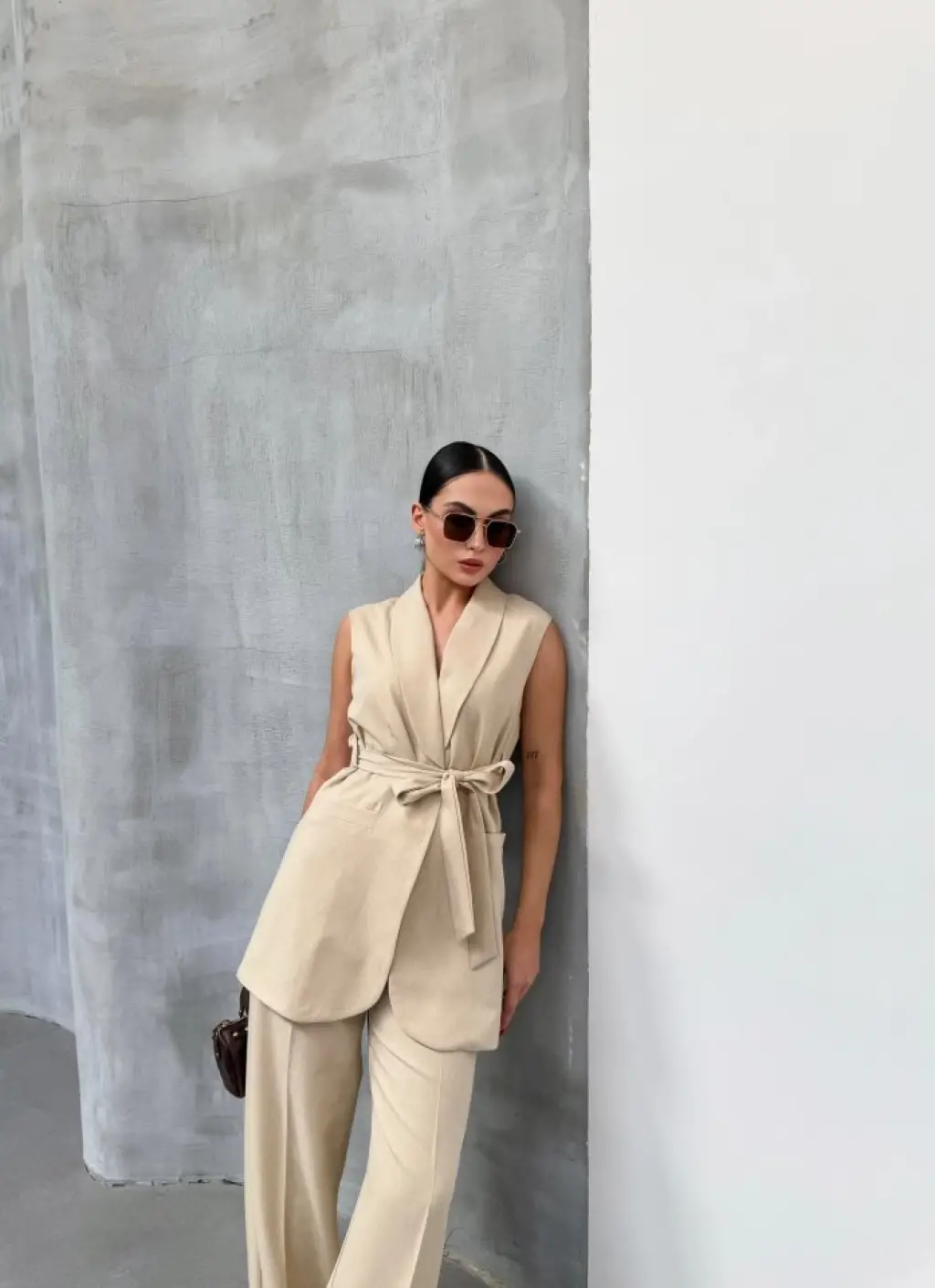Bej Yüksek Bel Kumaş Pantolon 6650