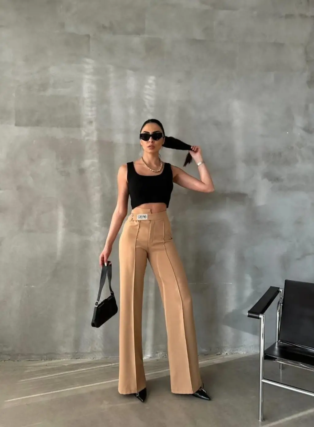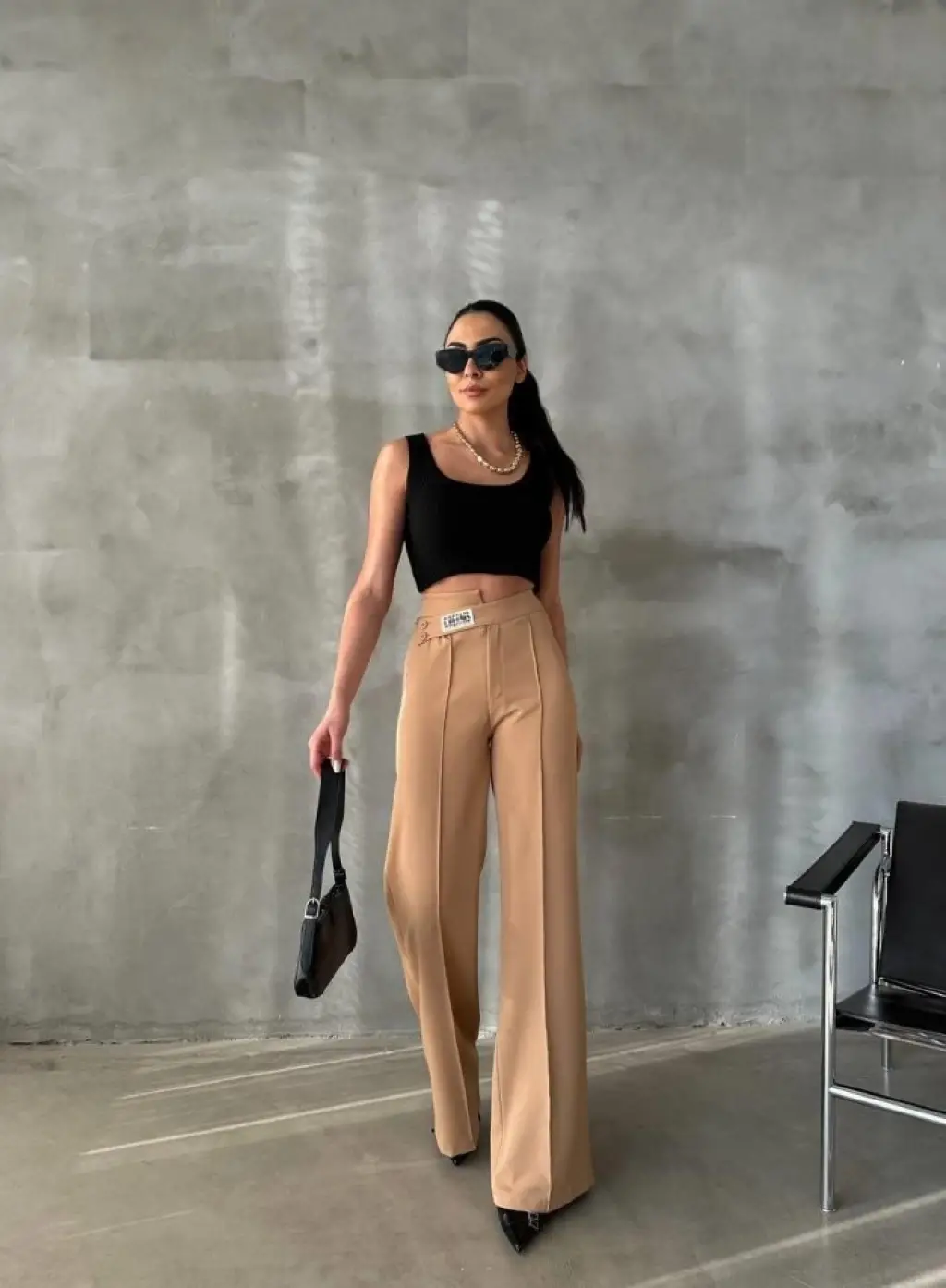 Siyah Yüksek Bel Kumaş Pantolon 6584