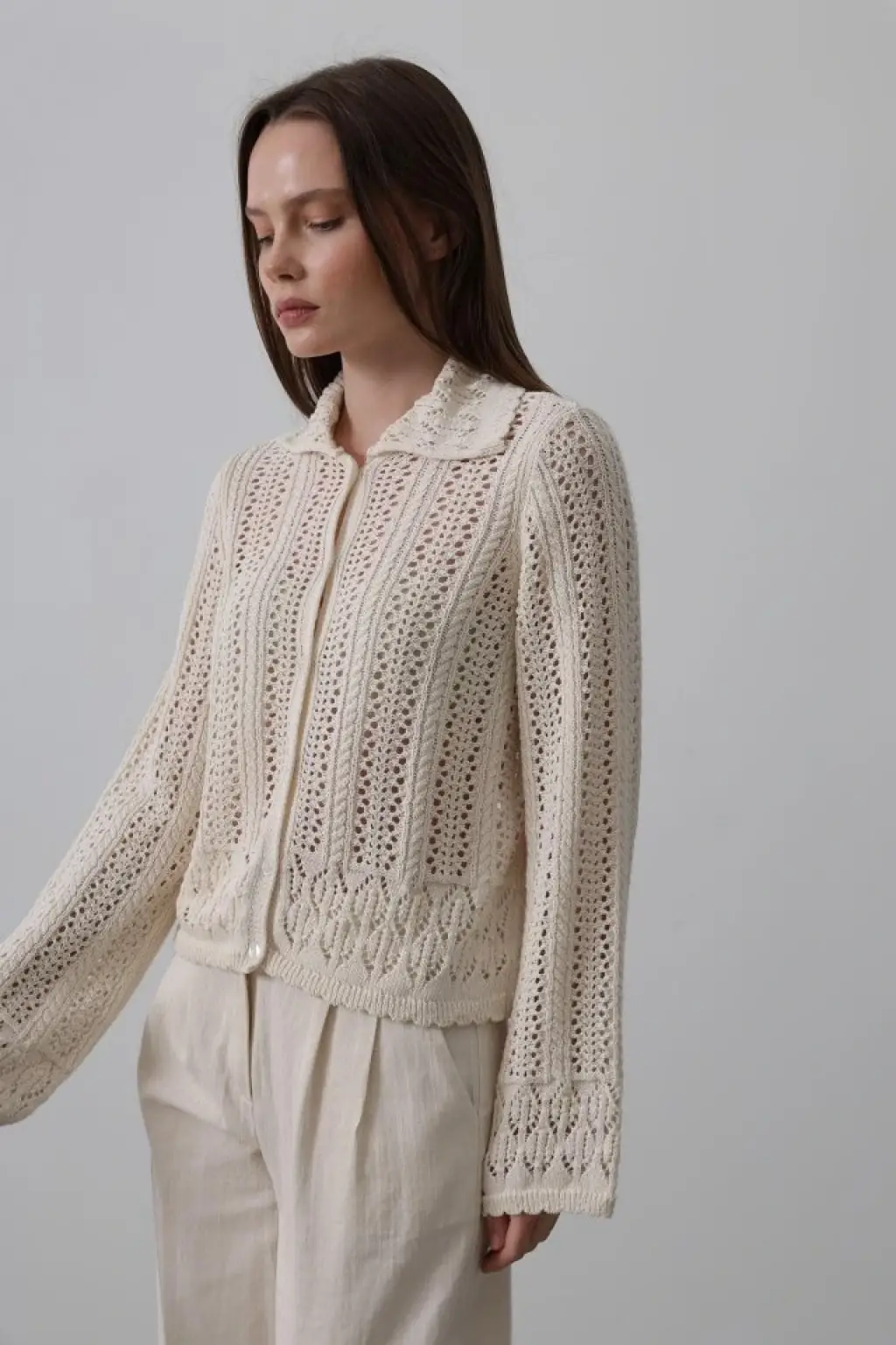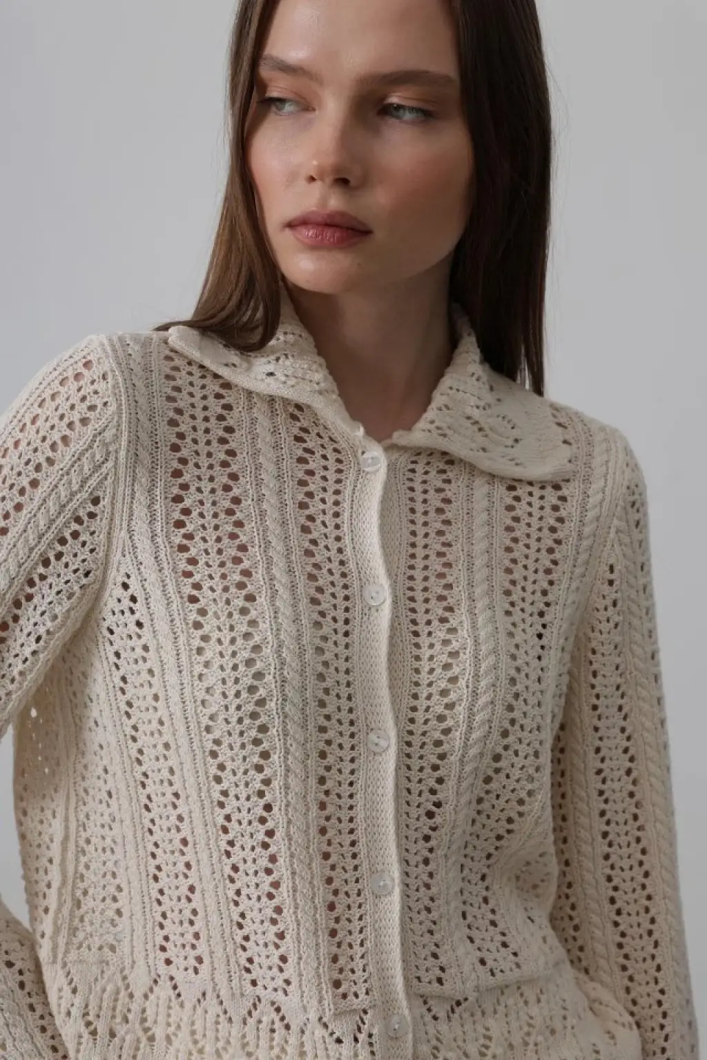 Gömlek Yaka Uzun Kol Triko - Ekru