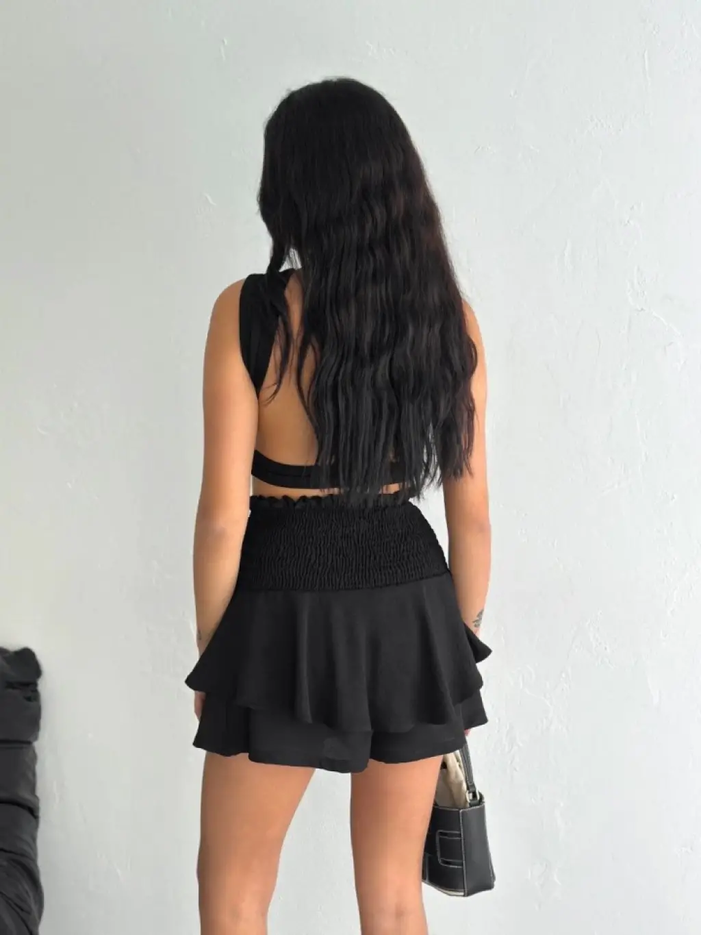 Siyah Müslin Kumaş Şort Kadın Giyim