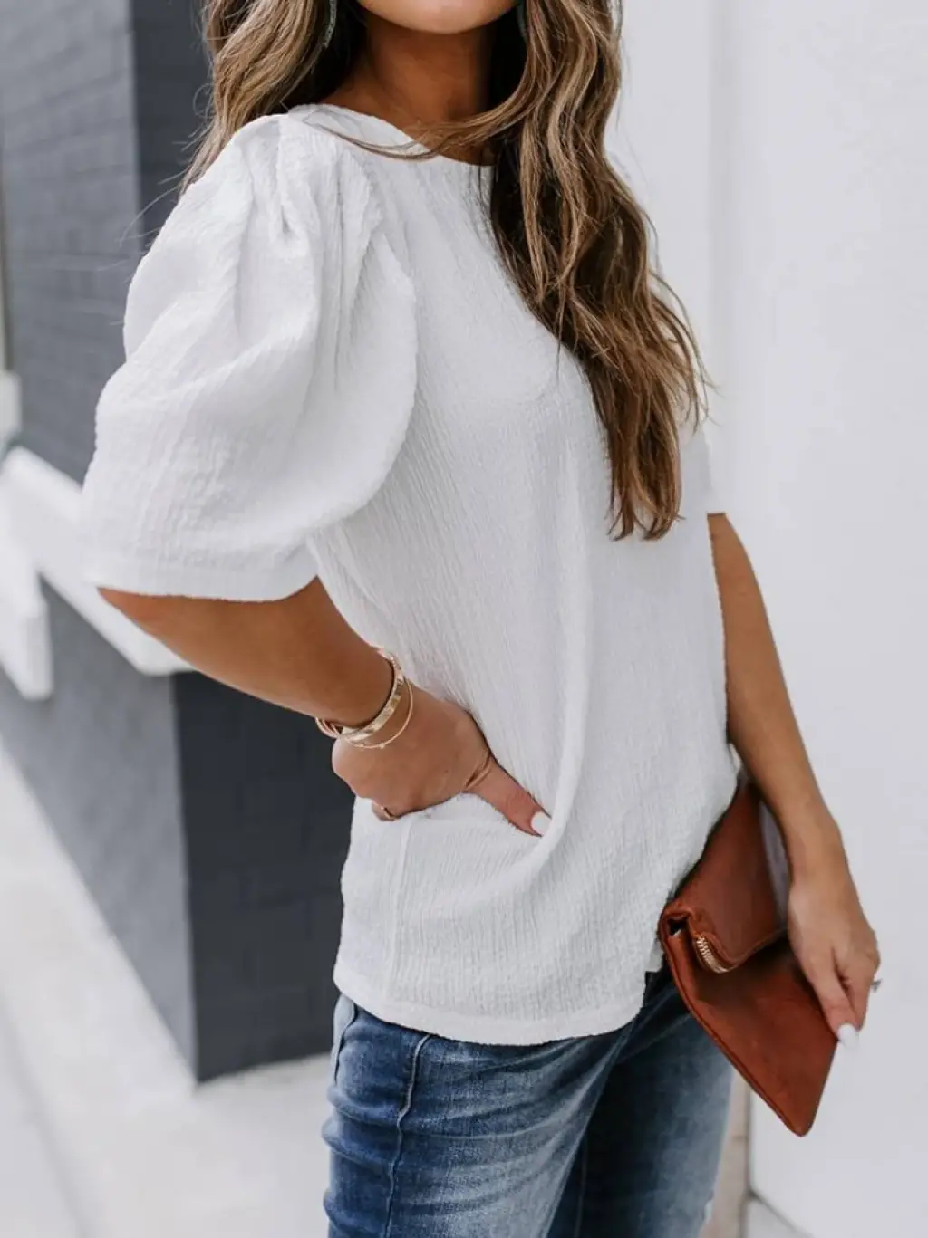 Kadın Kısa Kollu Pileli Balın Kol Bürümcük Bluz