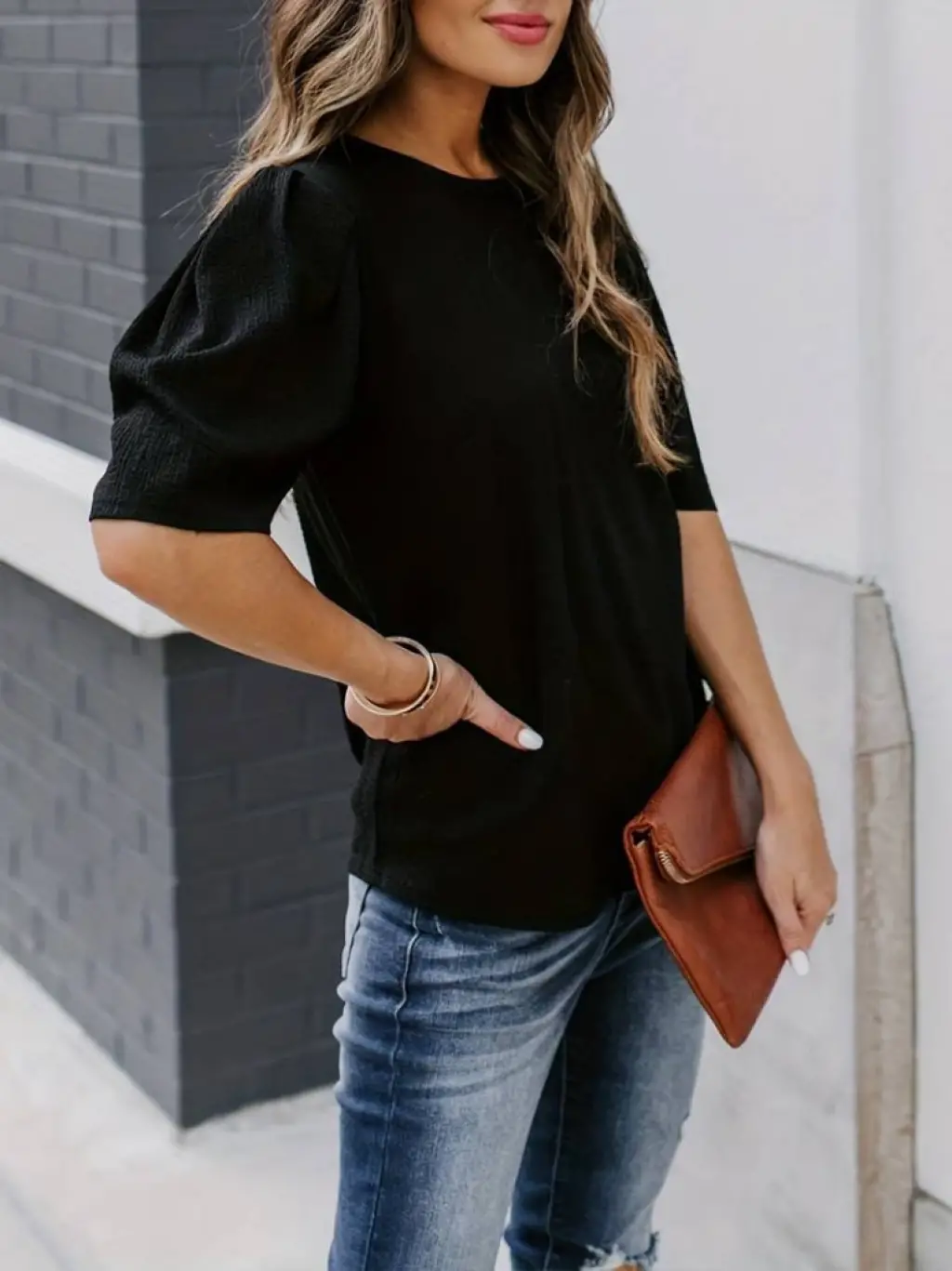 Kadın Kısa Kollu Pileli Balın Kol Bürümcük Bluz