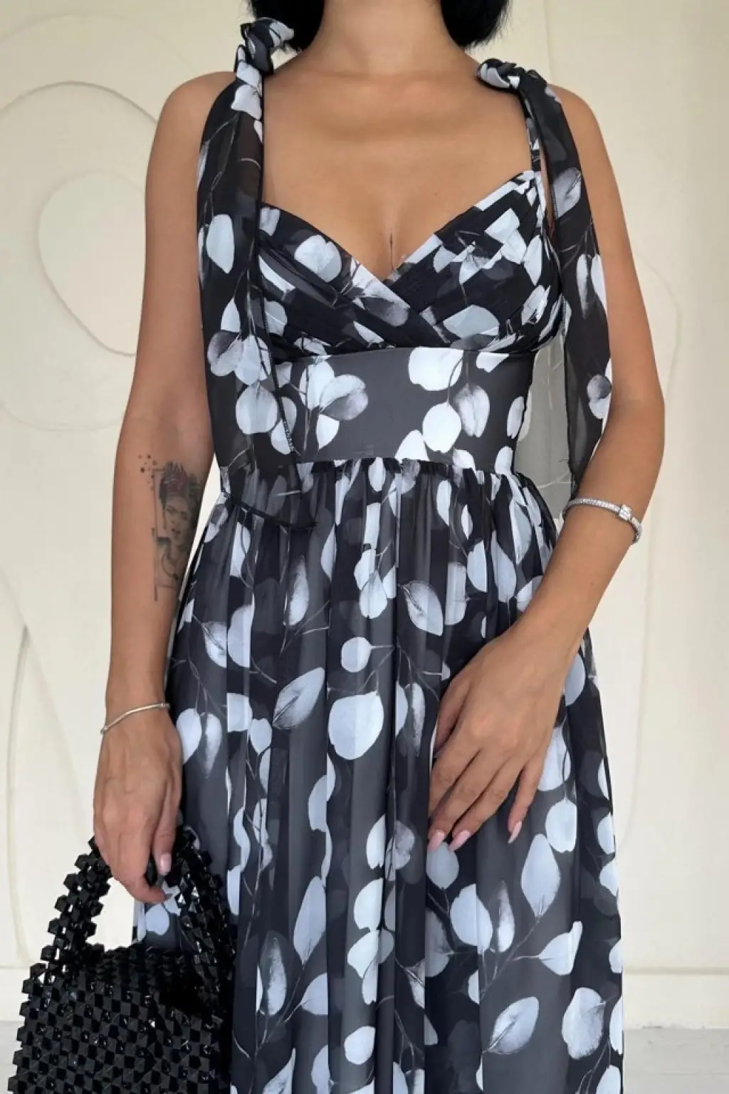 Siyah Şifon Drapeli Elbise