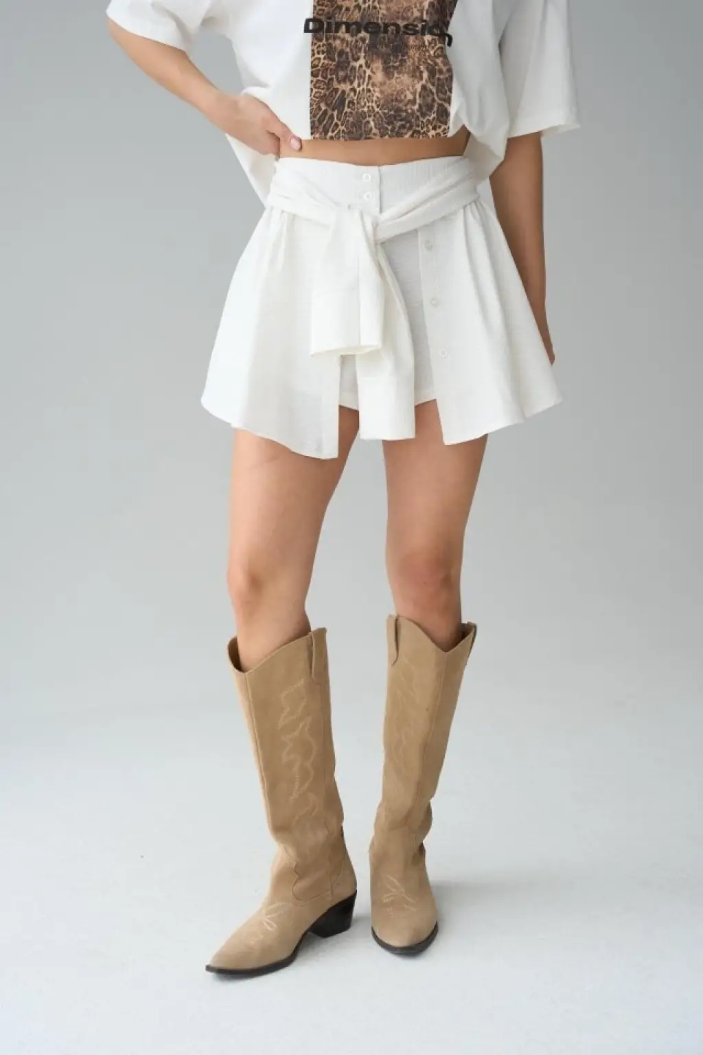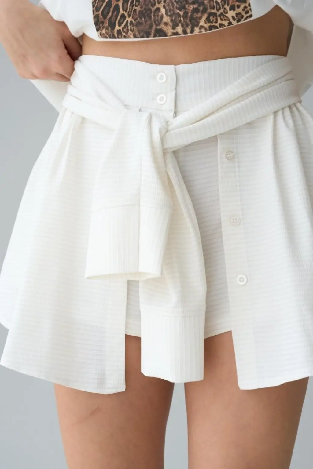 Gömlek Bağlamalı Şort - Krem