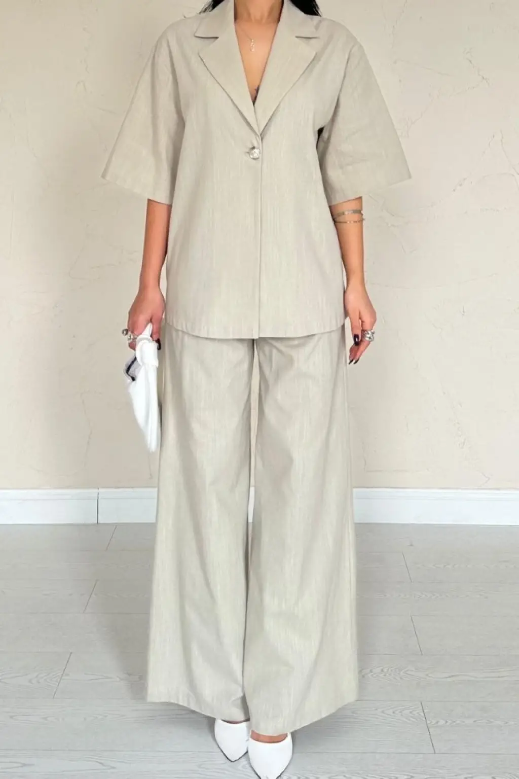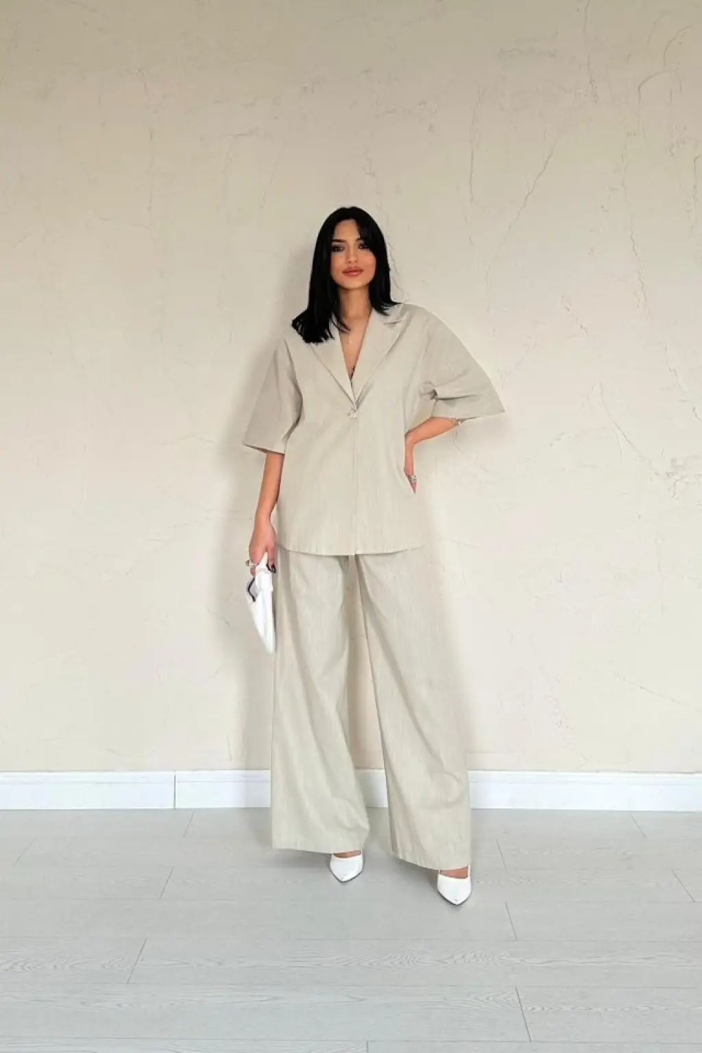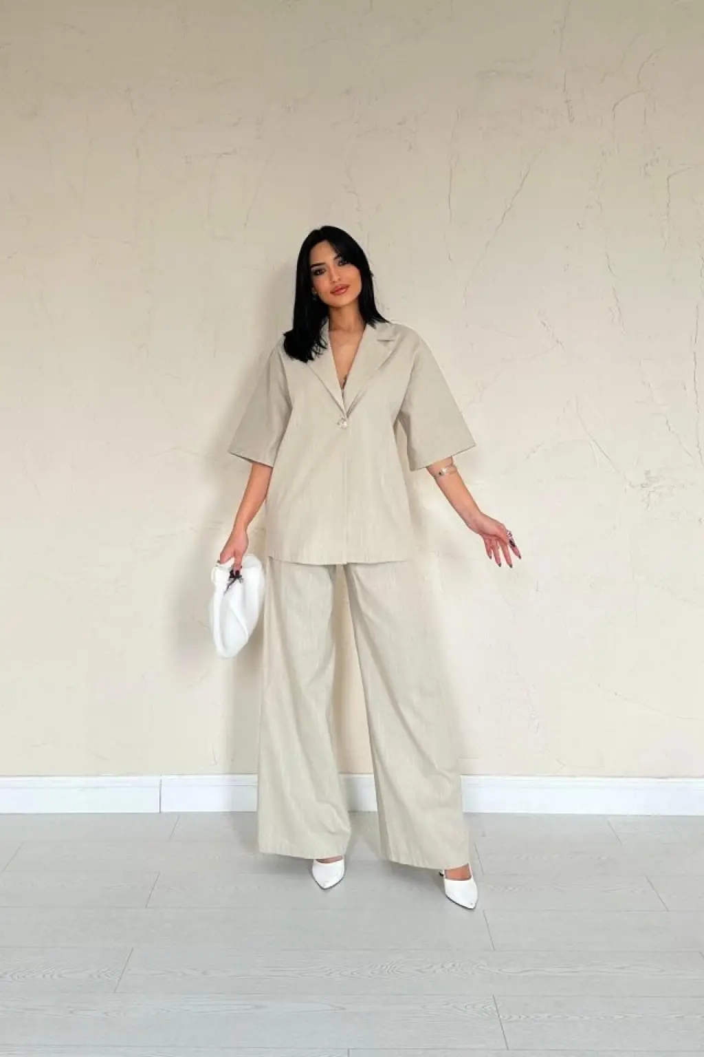 Kimono Pantolon Kumaş Takım 30054 - Bej
