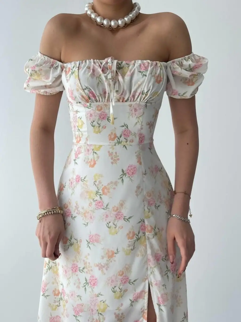 Kadın Kısa Kollu Madonna Yaka önü Kısa Arkası Uzun Ithal Krep Elbise