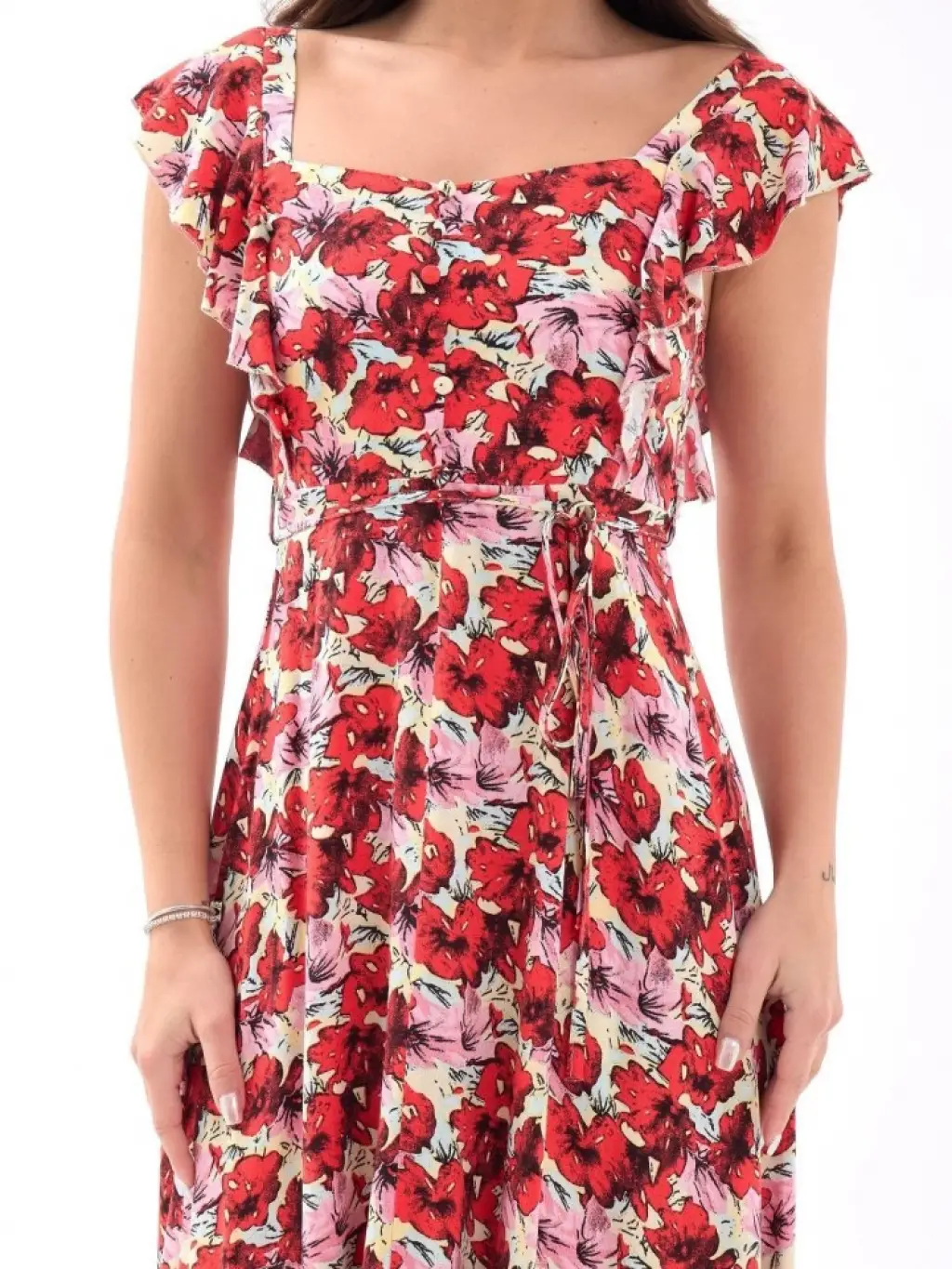 Kadın Askılı Kruvaze Yakalı Fırfırlı Janjan Krep Elbise