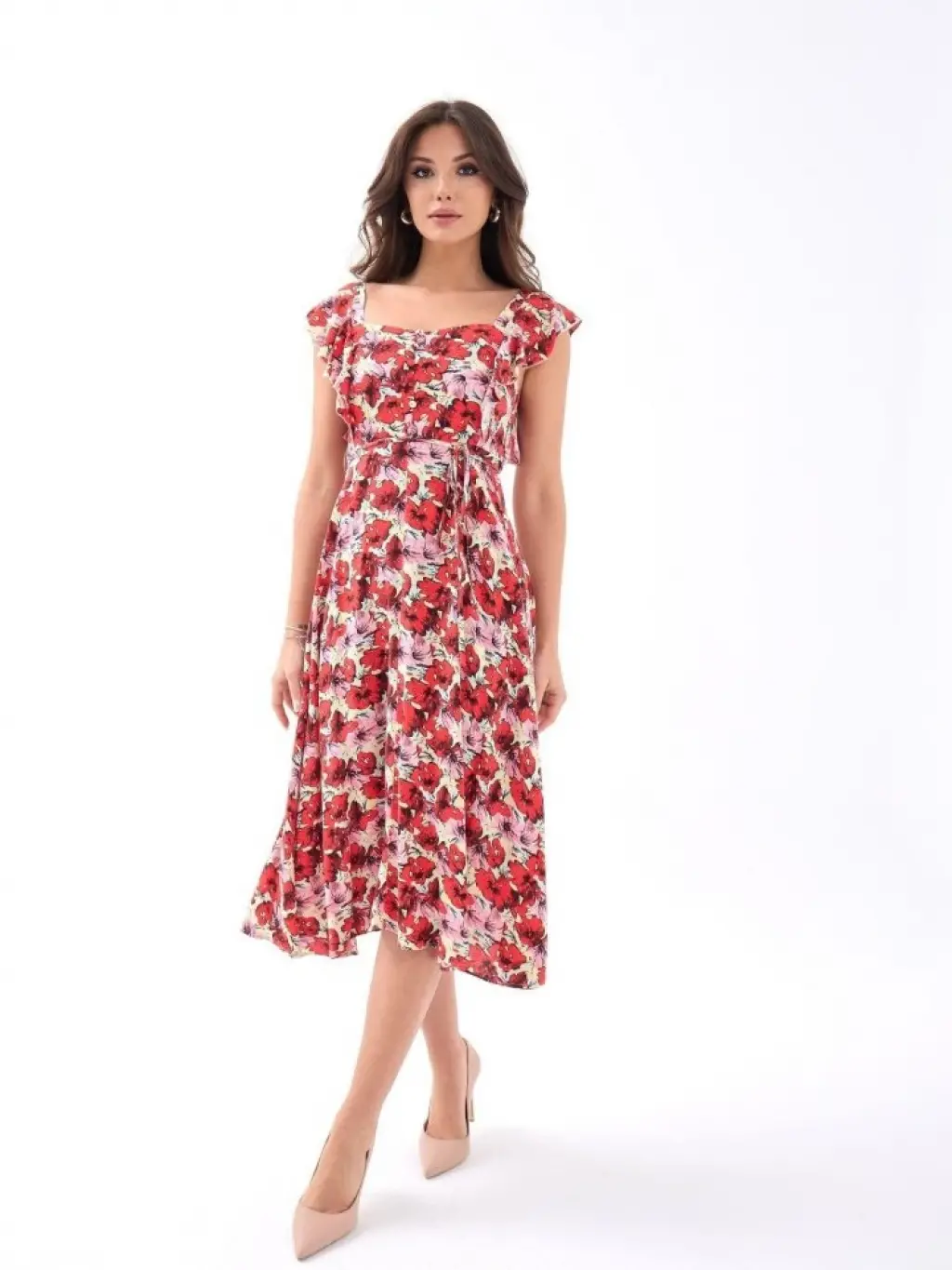 Kadın Kısa Kollu Madonna Yaka önü Kısa Arkası Uzun Ithal Krep Elbise