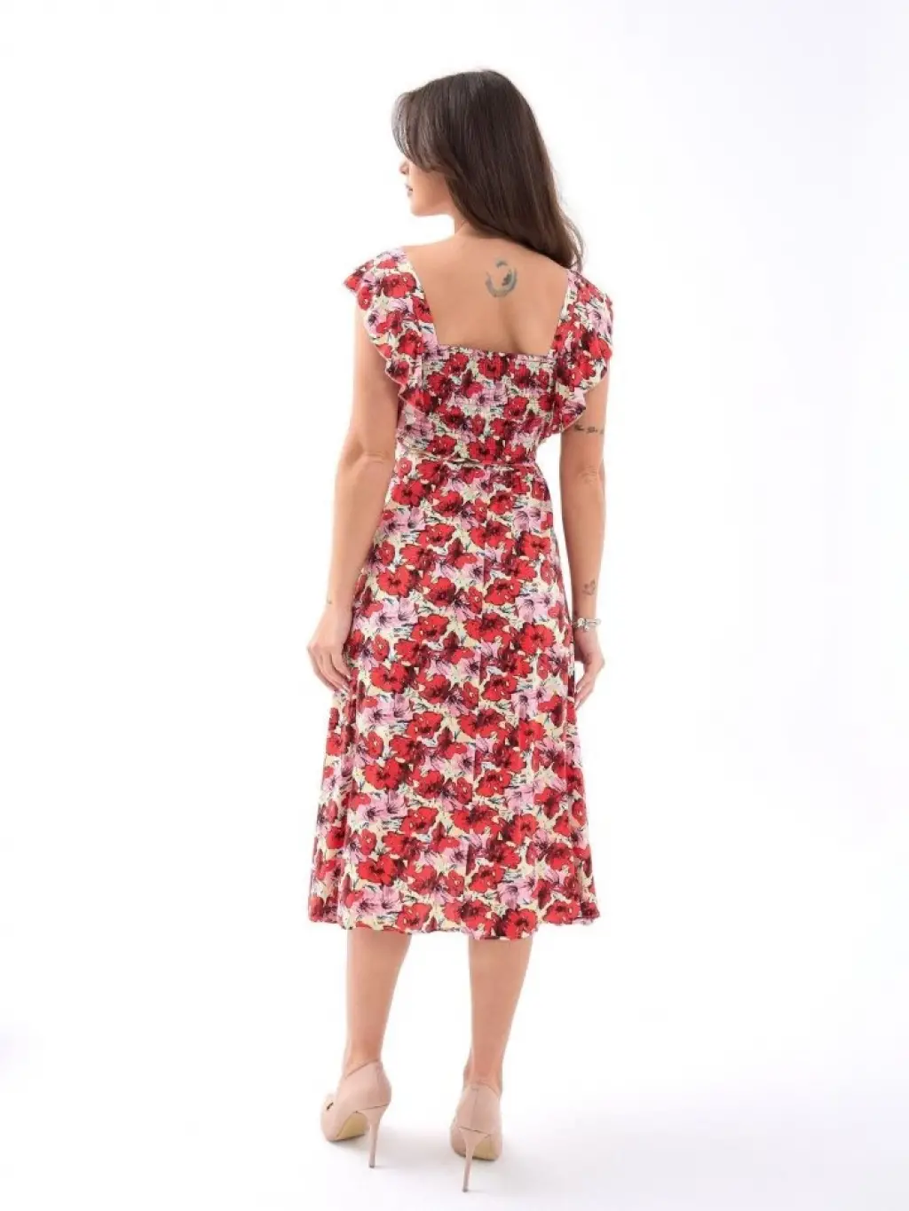 Kadın Kısa Kollu Yakadan Ve Etekten Fermuarlı Midi Viskon Iki Iplik Elbise