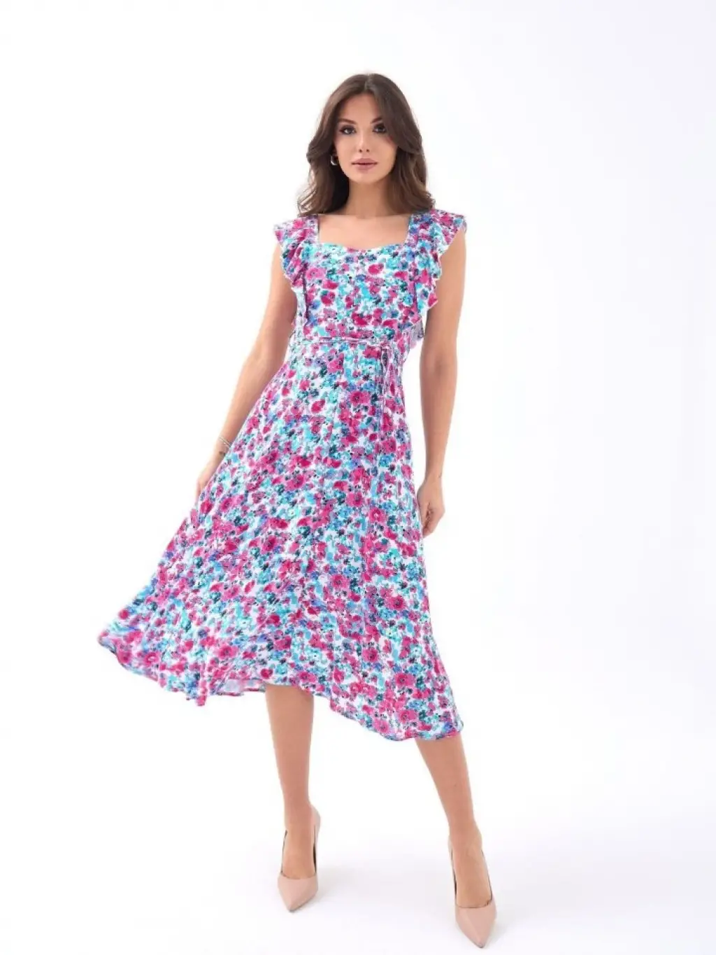 Kadın Askılı Kruvaze Yakalı Fırfırlı Janjan Krep Elbise