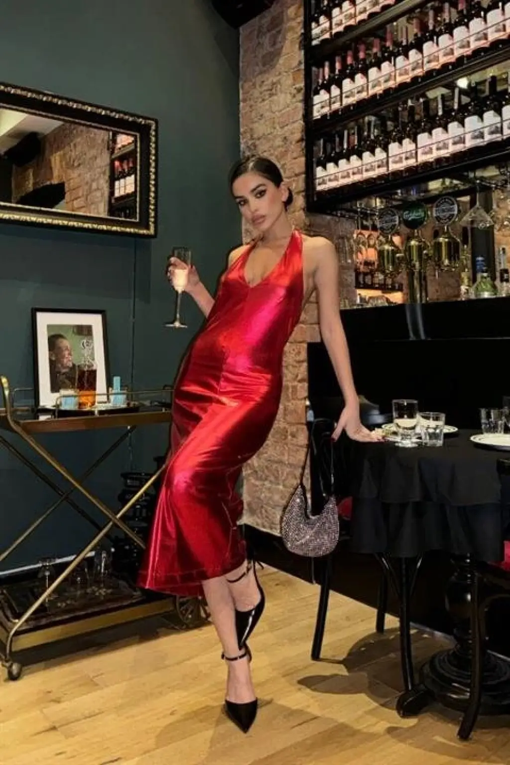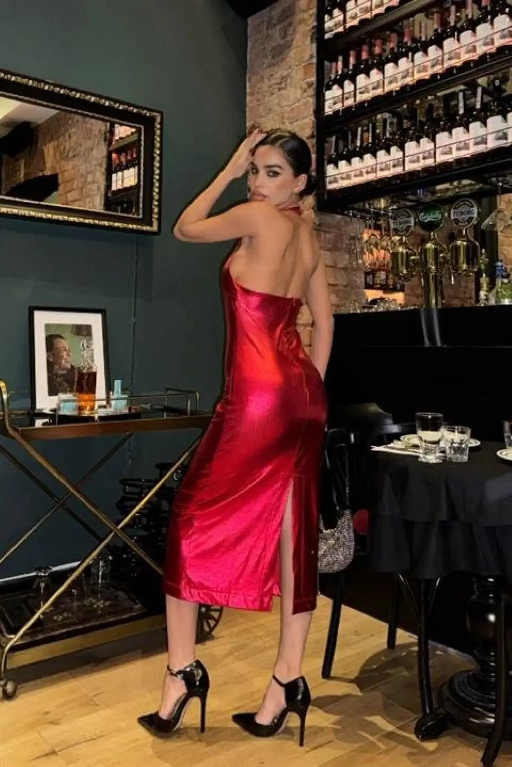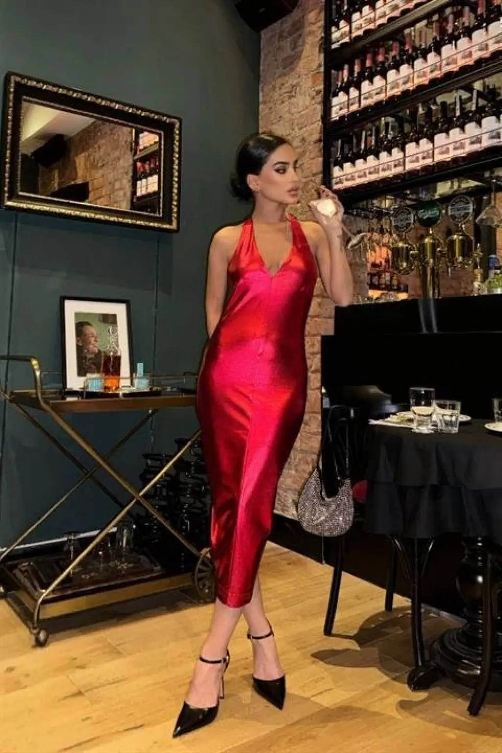 Kadın Uzun Lazer Kesik Detaylı Askılı Viskon Iki Iplik Bluz
