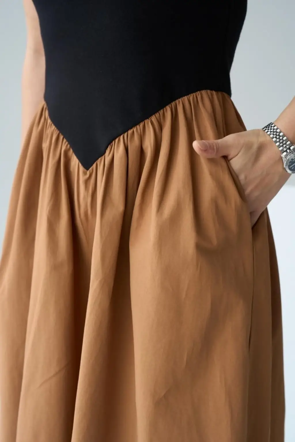 İki Renkli Elbise - Siyah-Taba