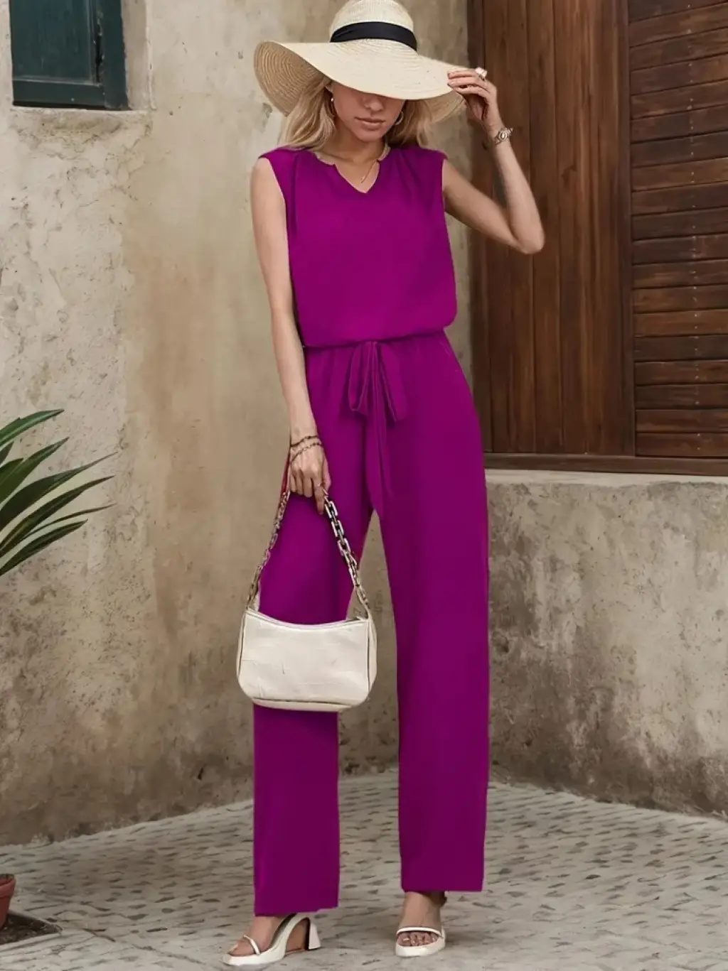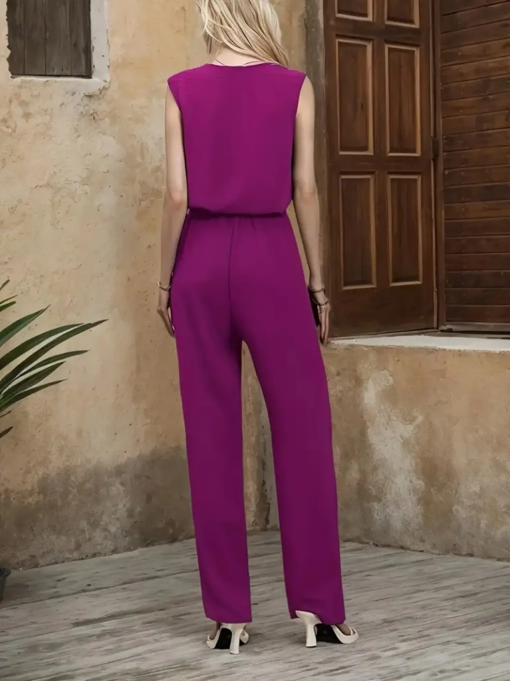 Kadın Kolsuz V Yakalı Aerobin Bluz Ve Belden Kuşaklı Pantolon Ikili Takım