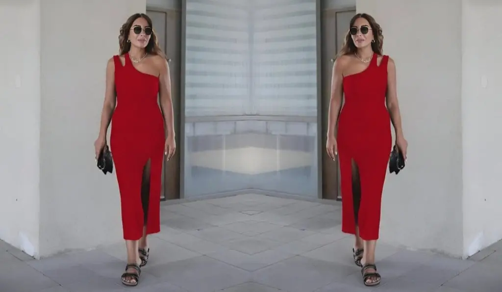 Kadın Truvakar Kollu V Yakalı Yırtmaçlı Uzun Aerobin Elbise